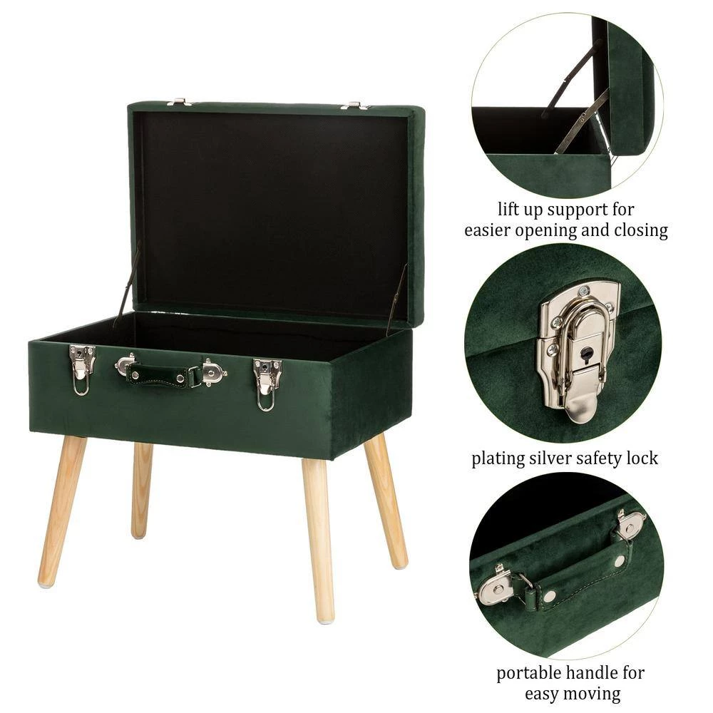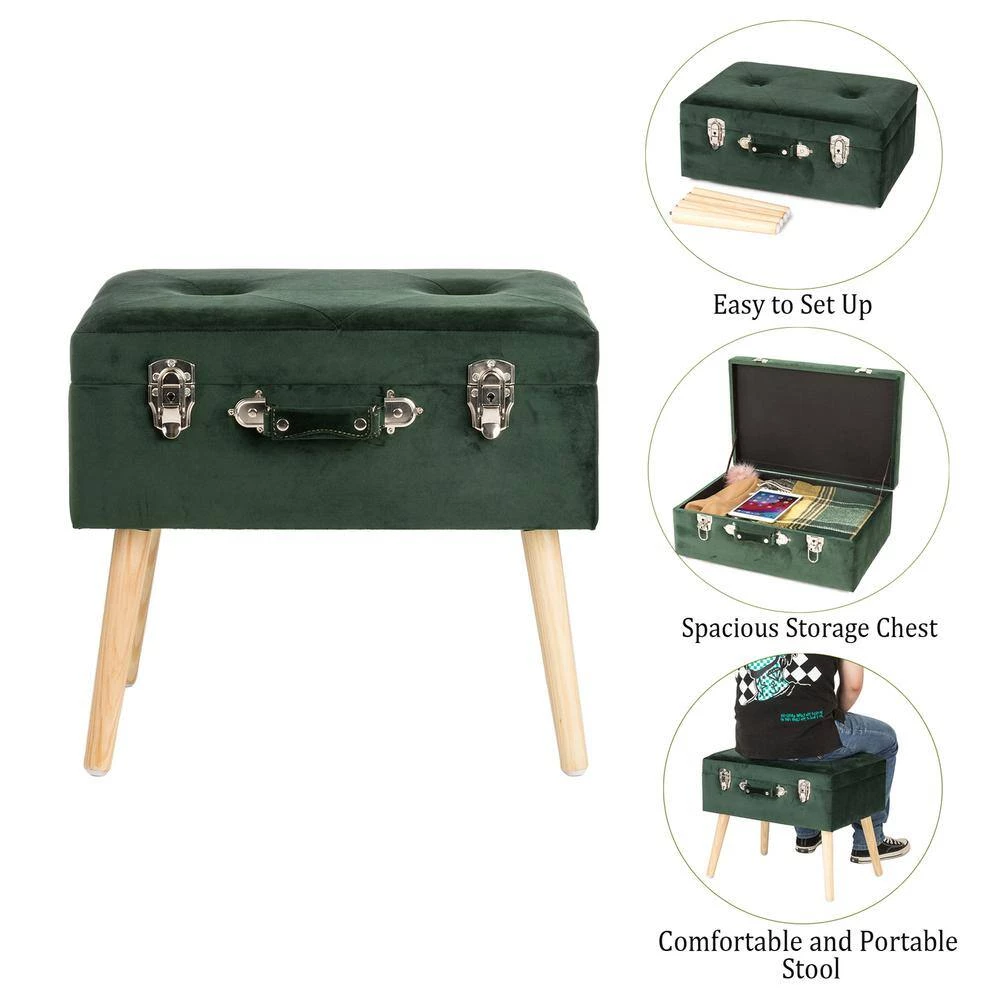 Our upholstered storage stool features Silky smooth and soft velvet,upholstered seat with fire retardant foam inside, and solid pinewood legs. The smart storage stool with lock adds a contemporary look. Add this accent piece to any room for extra seating or use it as an end table.