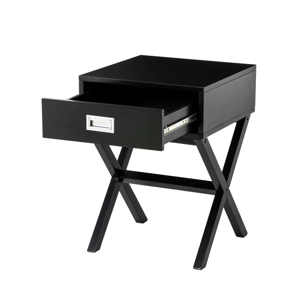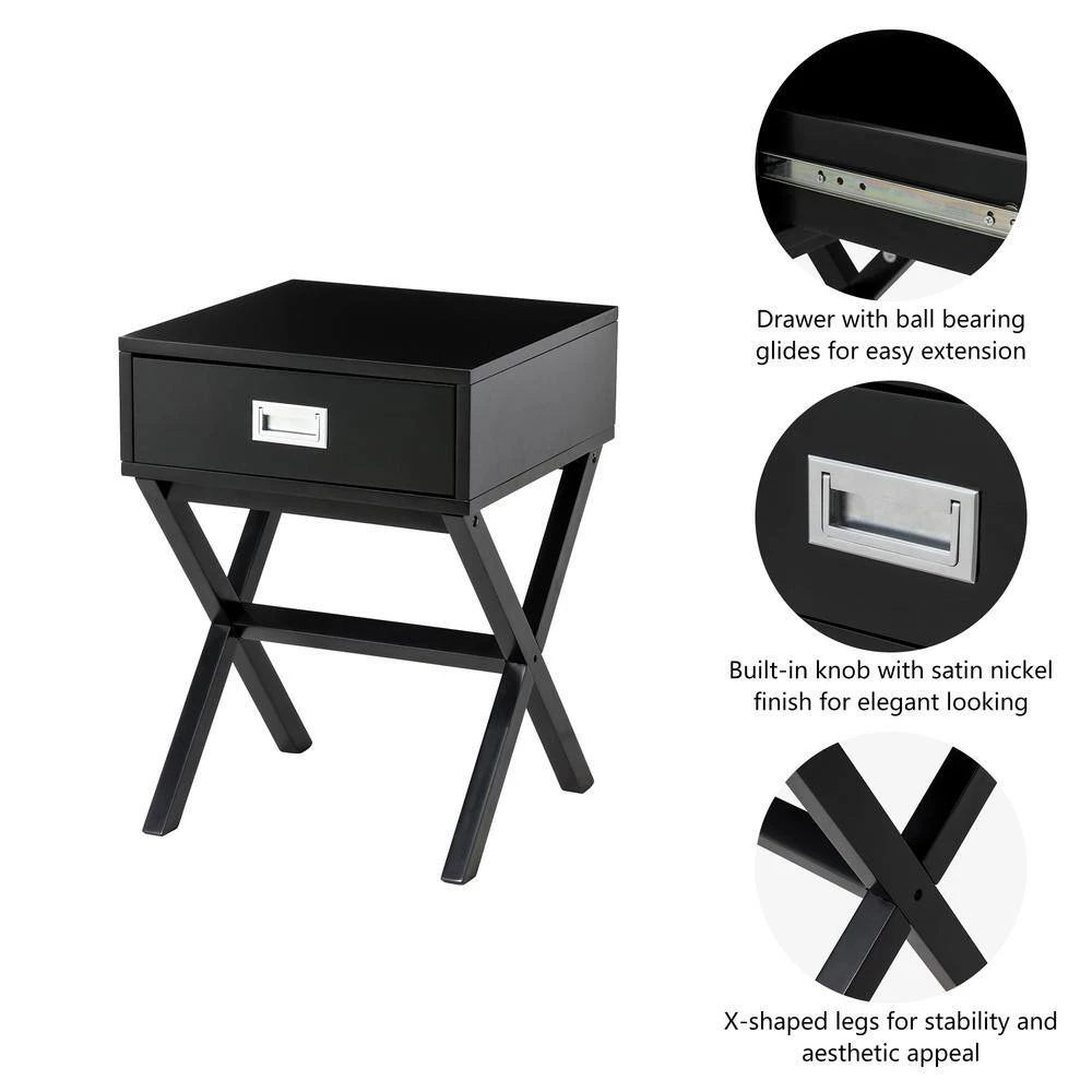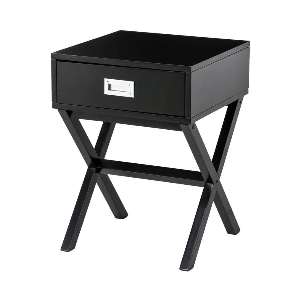 Bring mid-century modern style to your sofa’s side or act as a nightstand in the master suite. This end table features a clean-lined rectangular silhouette on a trellis base with x-shaped legs. Featuring an inset metal pull, one drawer offers plenty of storage for smaller accessories, while the smooth tabletop provides a perfect platform for framed photos or a stylish lamp.