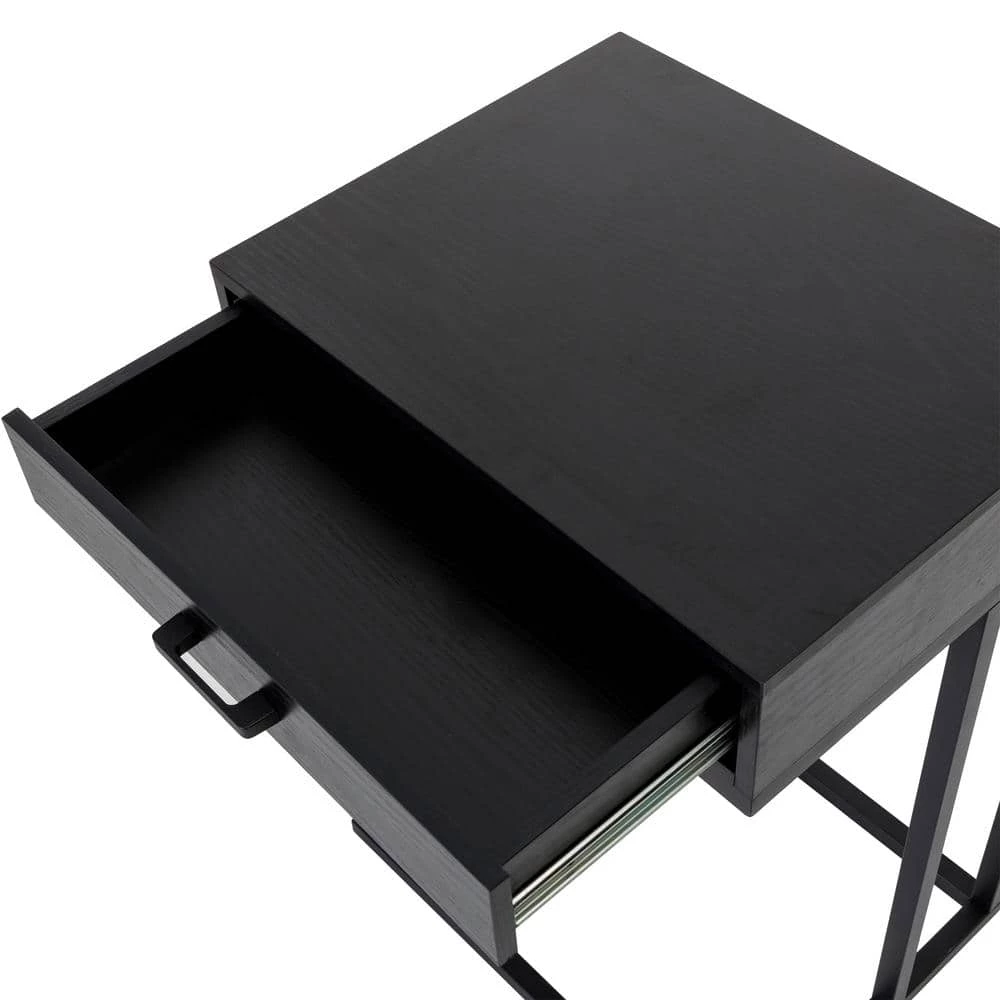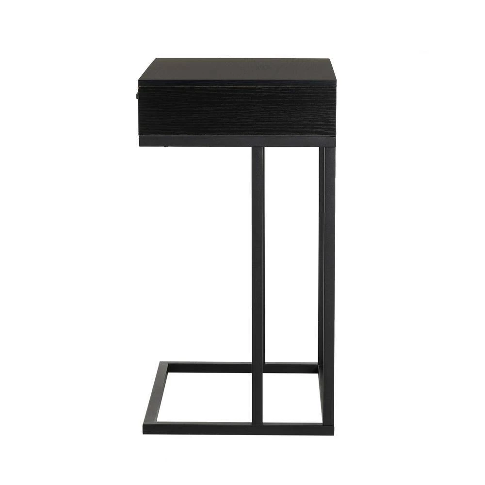 26 in.H Black Modern Industry Metal/Wooden “C” Side & End Table With 2 USB Charging Ports – Oak Melamine by Glitzhome