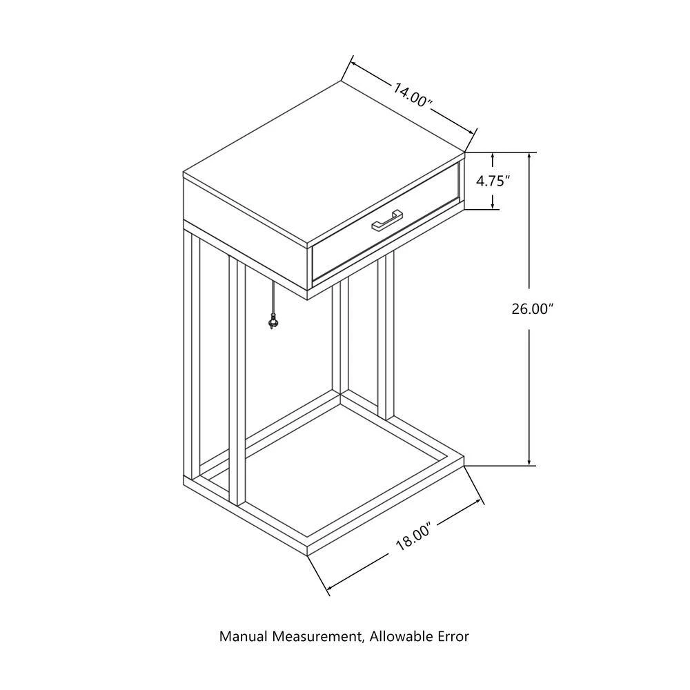 This compact side table is designed for bringing the most convenience to your house and simplifying your life. It features one drawer which provides more storage space for your books, magazines and other sundries. C-shape design enables it to slide under a sofa or bed for your convenience, while two fast-charging USB ports help make sure your mobile devices are always at full power. It is wonderful for smaller homes such as apartments, duplexes and townhouses.