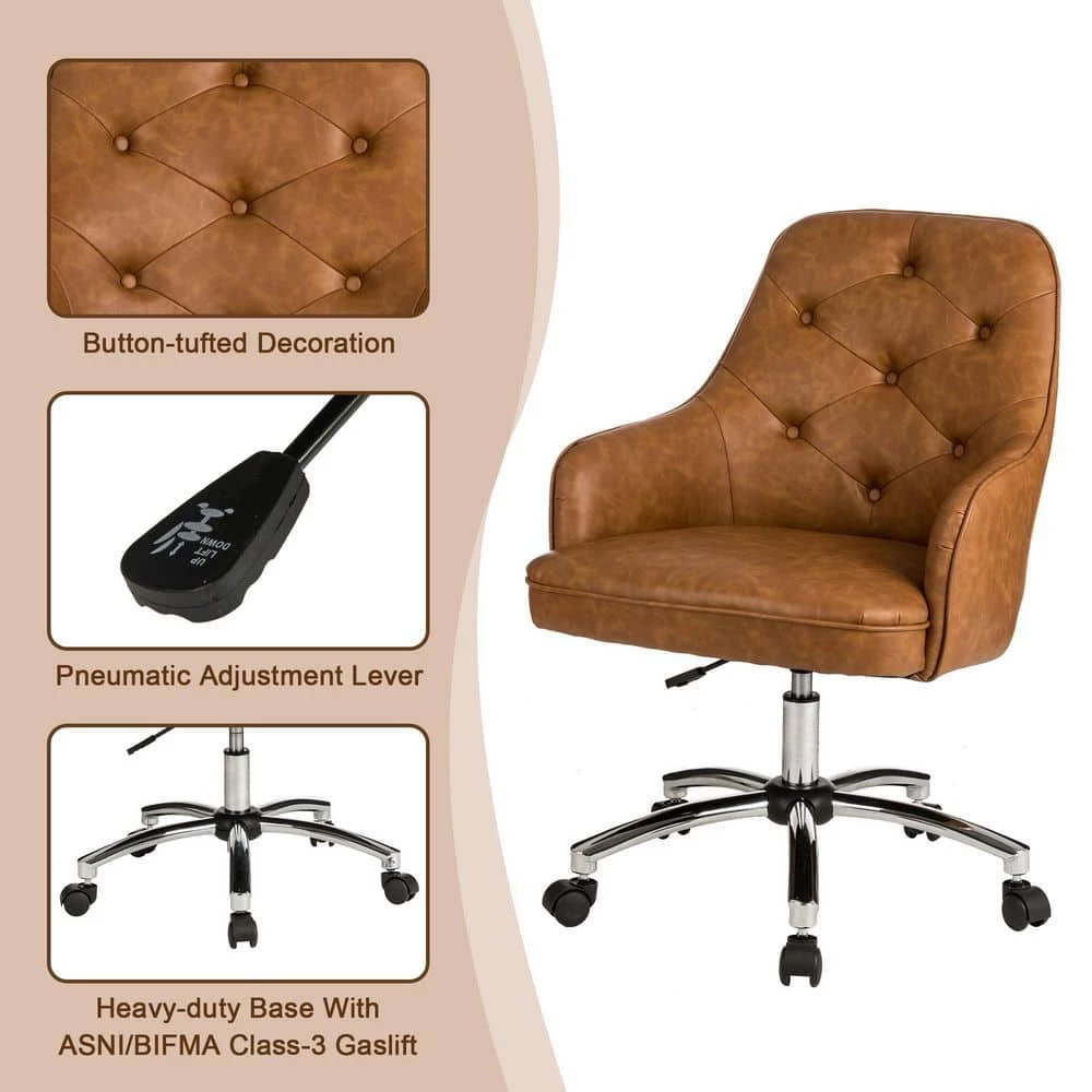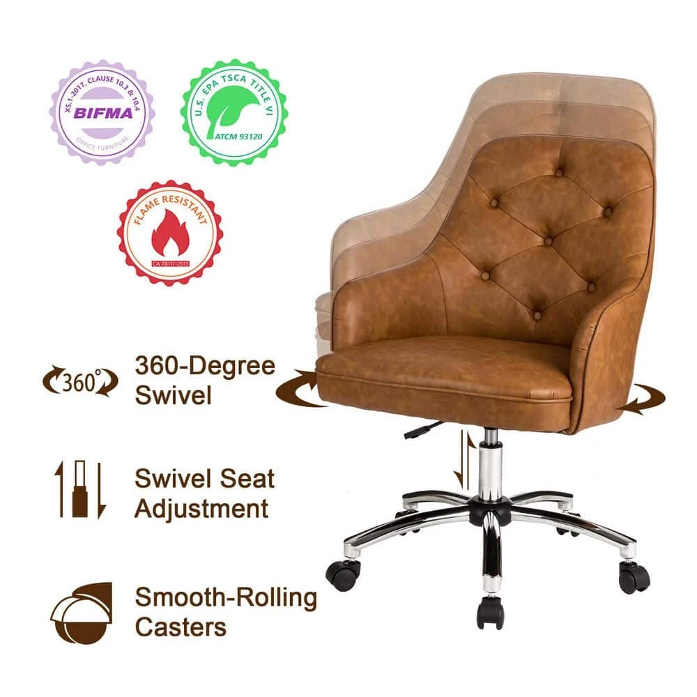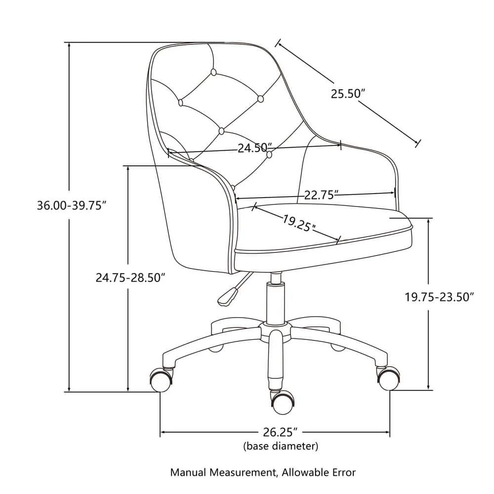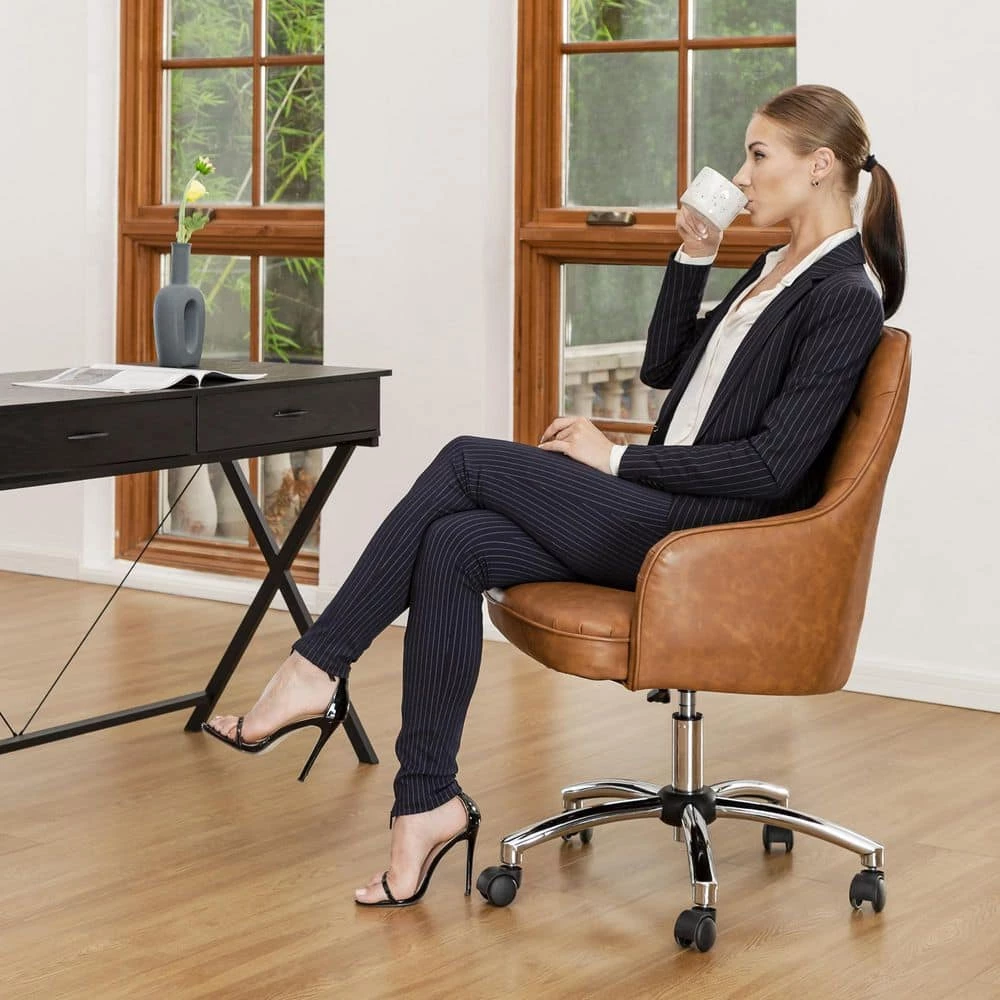 360-degree swivel features a convenient height adjuster which makes it easy to adjust its height for desk workers of all body sizes. Middle-back design comes with high-density padded seat cushion and armrest allow you to sit in comfort at your desk for relief from discomfort caused by prolonged sitting while working or studying. Meanwhile the crafted of cast stainless steel in a gleaming chromed finish, the five-jaw base includes hooded caster wheels for effortless mobility, while a swivel mechanism lets you glide from task to task with ease.