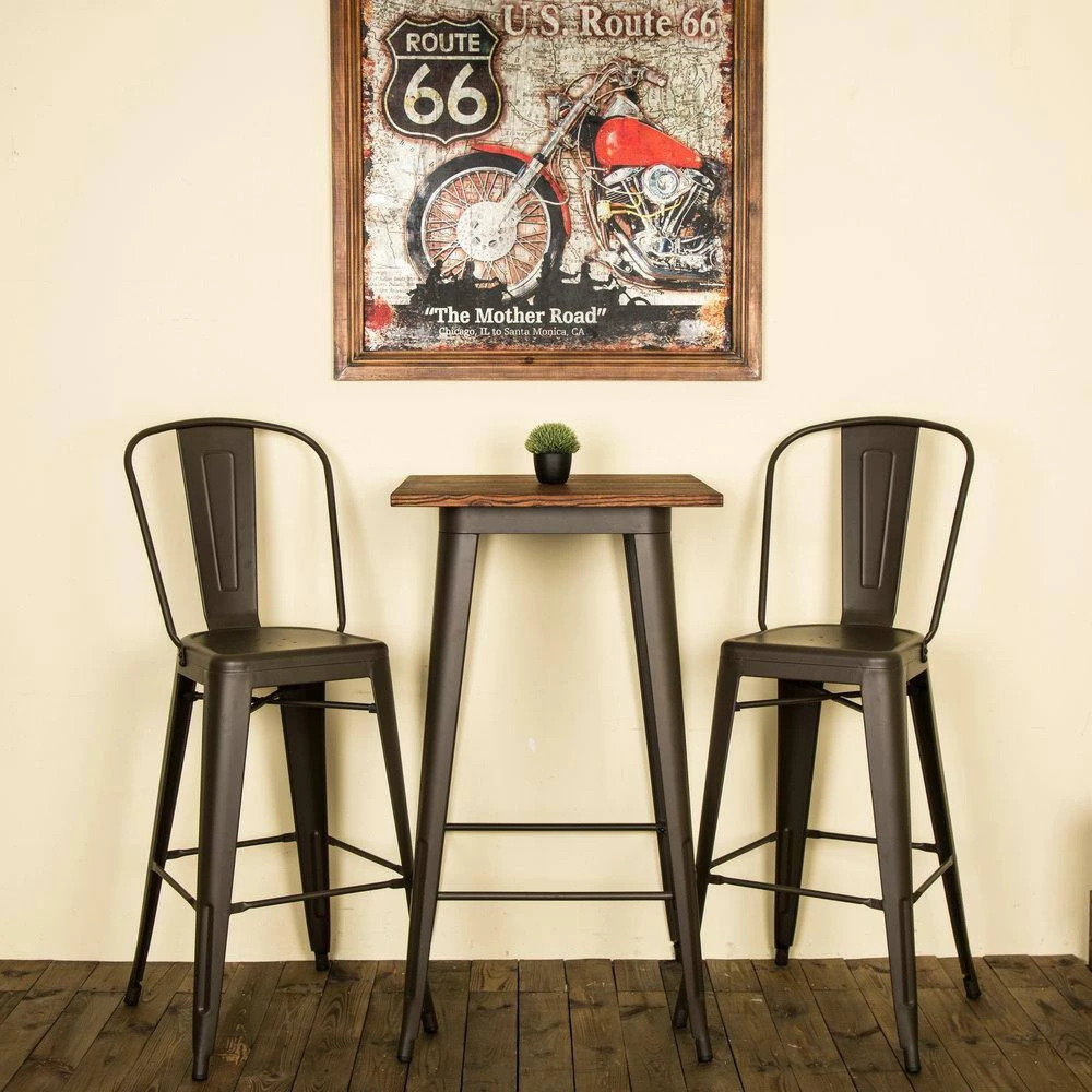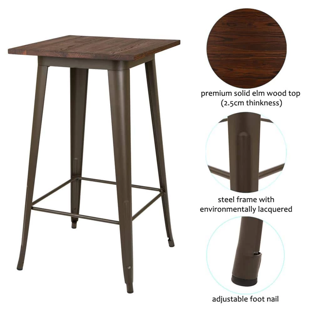 This bar table has a design that’s both elegant and functional. It’s an ideal choice to occupy the space in a dining room, kitchen or bistro offering a spot for beverages, knick-knacks and more. The metal legs are a cool industrial touch and the rustic wood finish top is beautifully weathered. Bring an effortlessly trendy look into your kitchen or dining decor with this tall bar table. Designed in rich brown, it’s an easy match for most homes. With elm wood top, it is easy and convenient to be cleaned with damp cloth. Sturdy and durable.