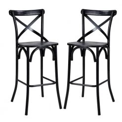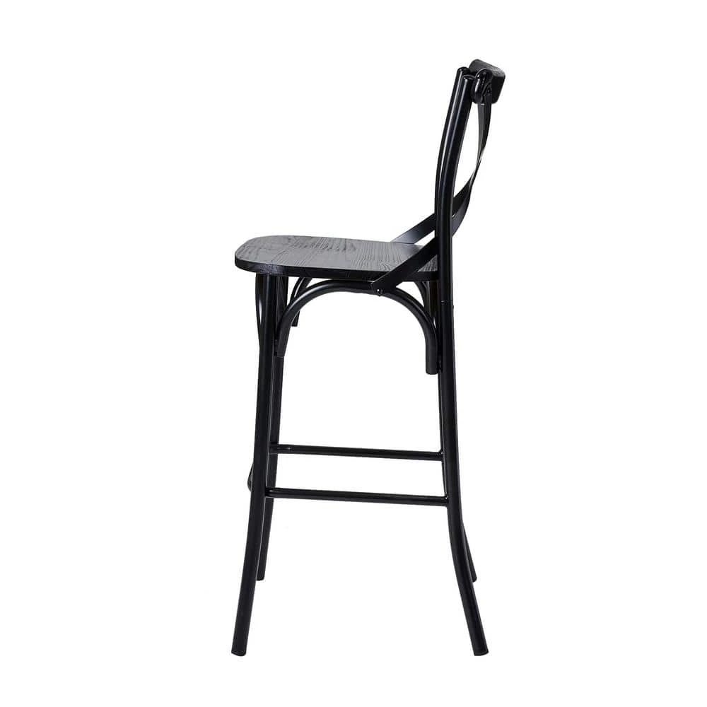 For a pop of personality at the kitchen island, dining room, restaurant or home bar, this bar stool is your best choice. It features black steel tubular frame and solid wood for an industrial look, its X-shaped back design, arched half-moon support and splayed legs give a classic and modern look that blend with a variety of decors or furnitures. The handcrafted elm wood creates it with character and individuality. The inherent knots, grains, color variation and texture define each piece with its own personality.
