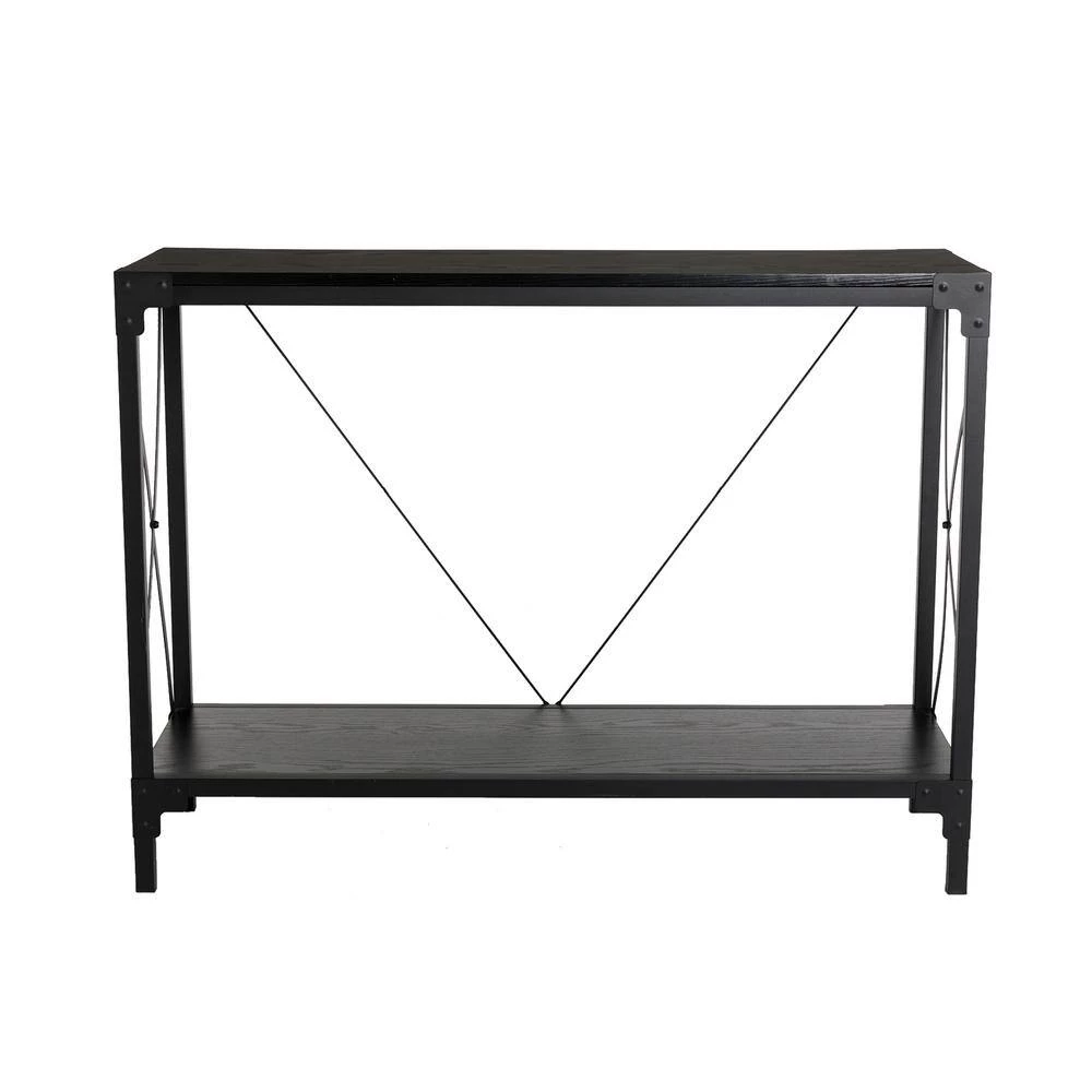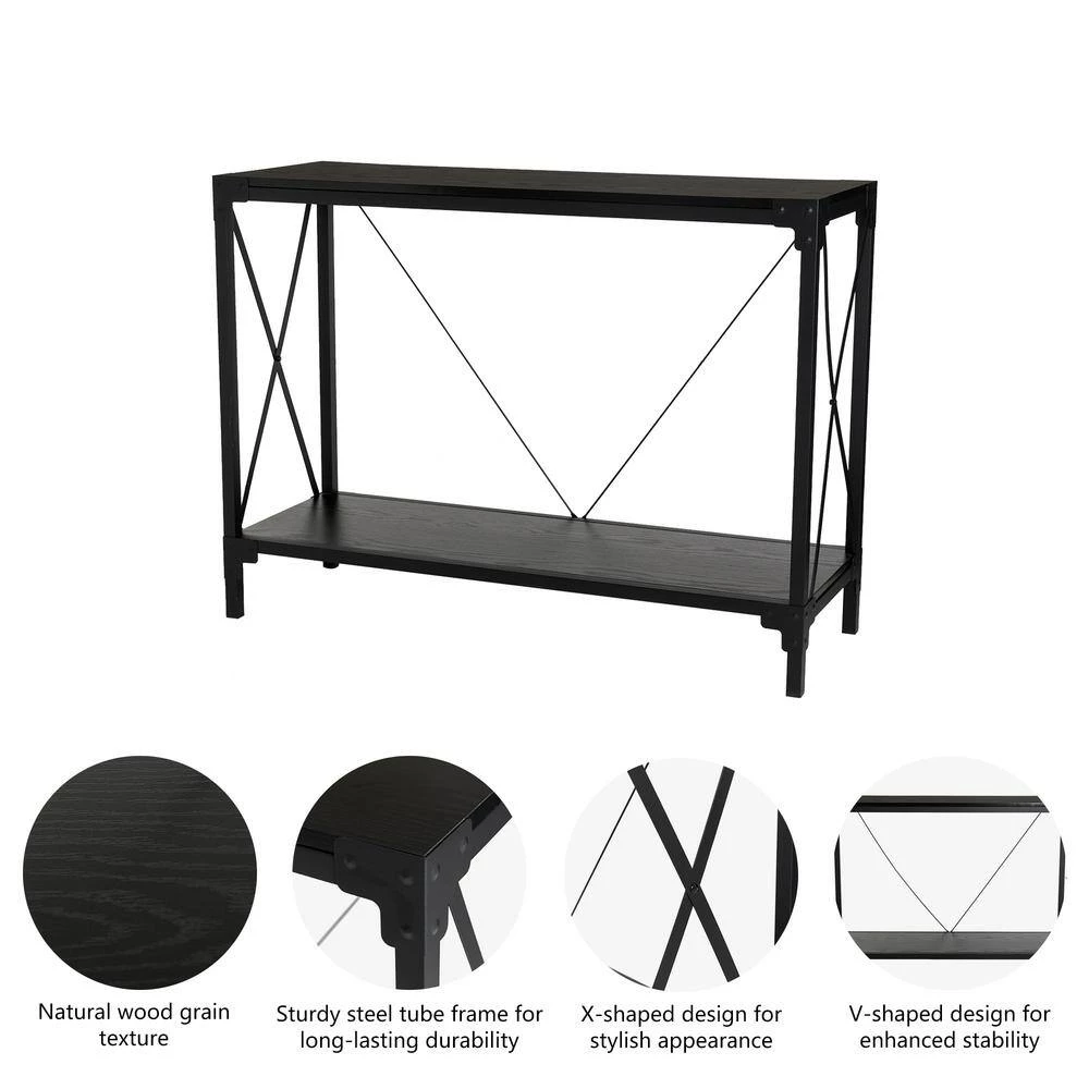 The entryway, an empty hall, or the living room – the console table can go anywhere, and easily turn a spare space into a decorative display. This console table strikes a clean-lined rectangular silhouette on four straight square legs, the corner accents , V-frame back and X-frame side offer a complement, while an open lower shelf is perfect for stacking go-to books, displaying framed photos, or larger decor items. In addition, the textured appearance and natural wood grain can perfectly add a sense of advance to your home.