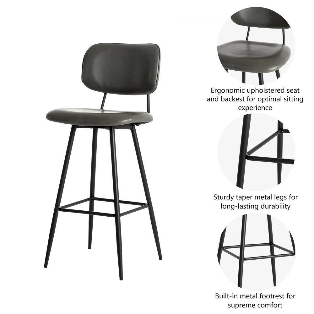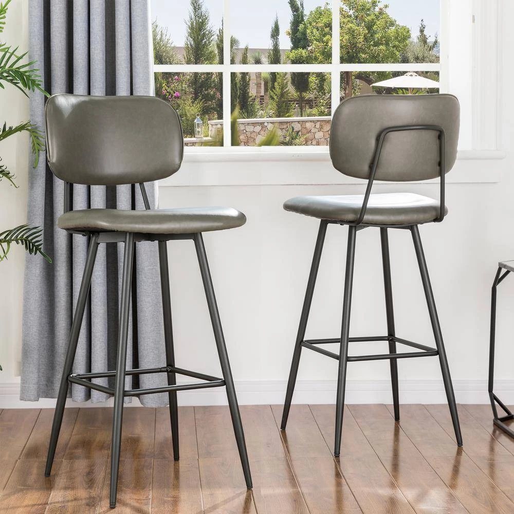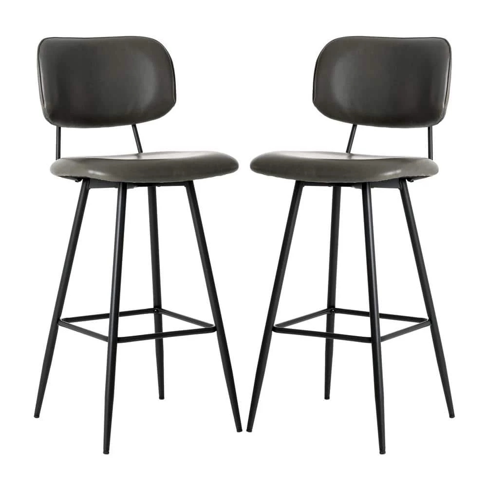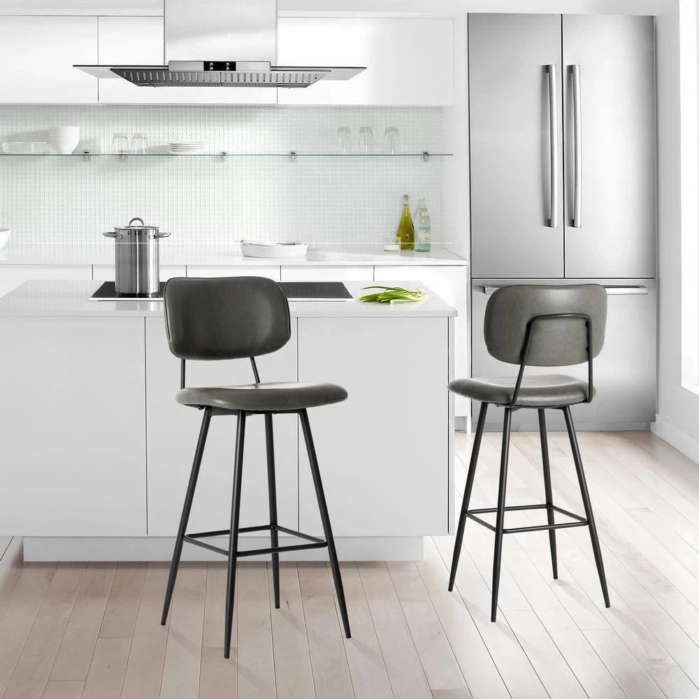Whether you have a kitchen island or a breakfast bar, stools are the perfect seating solution. This 2-piece set is fitting perfectly in modern aesthetics, crafted from metal frame in a neutral finish and upholstered with PU leather for a touch of texture. It features sleek tapered legs and a built in footrest for added comfort. It’s an ideal seat or home decor accent in cafes, bars, restaurant, kitchen island, living rooms and any entertainment space.