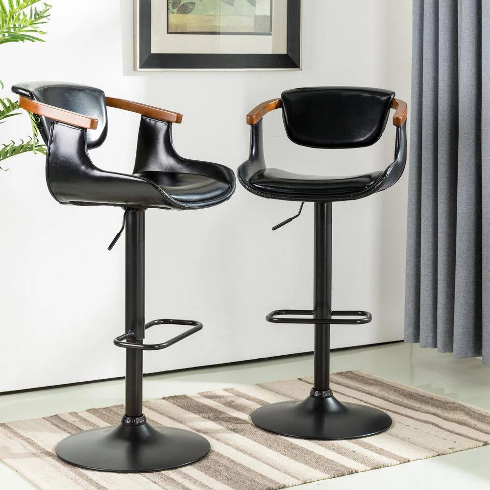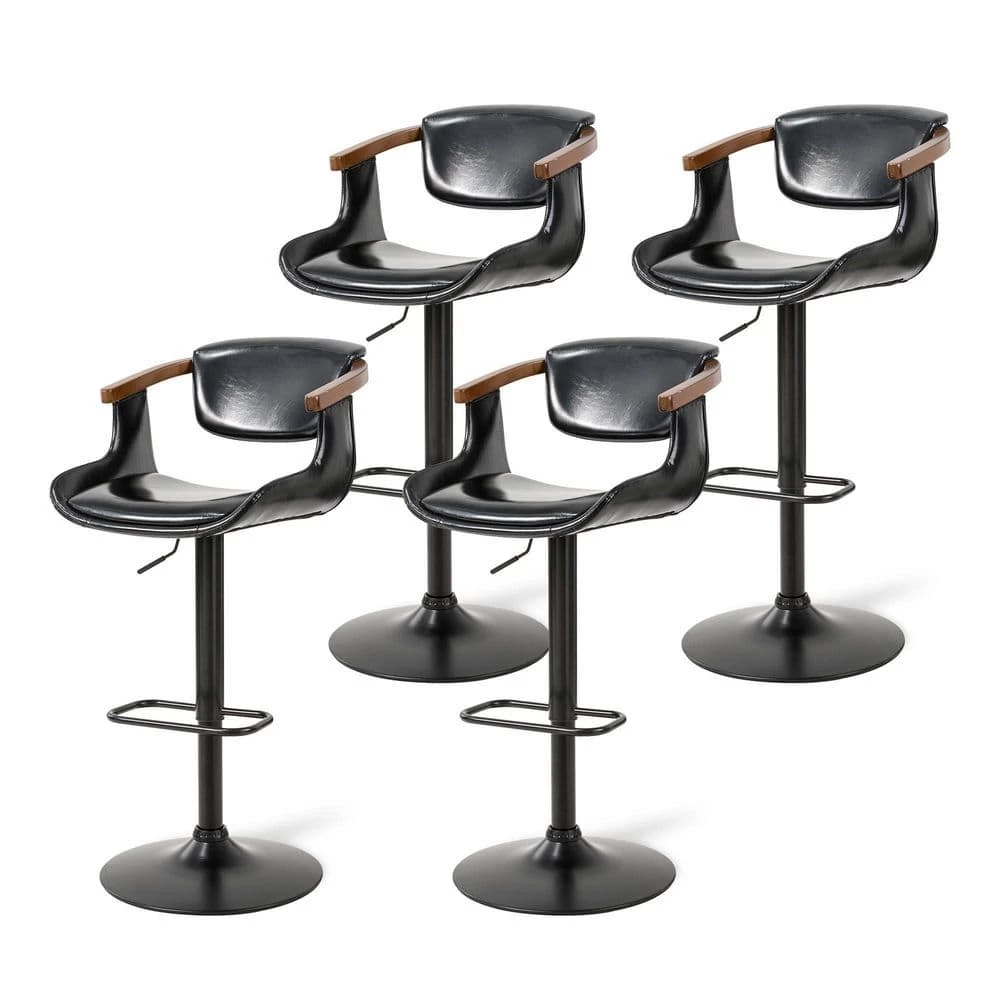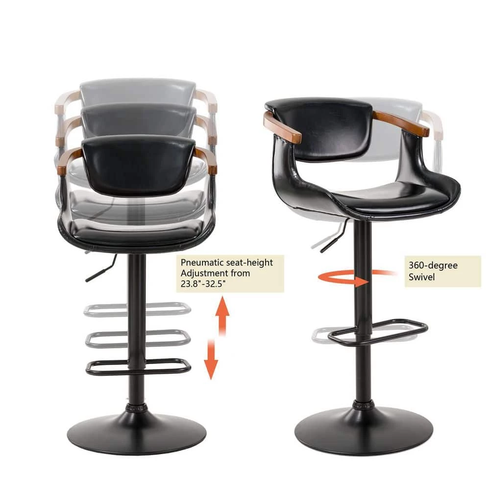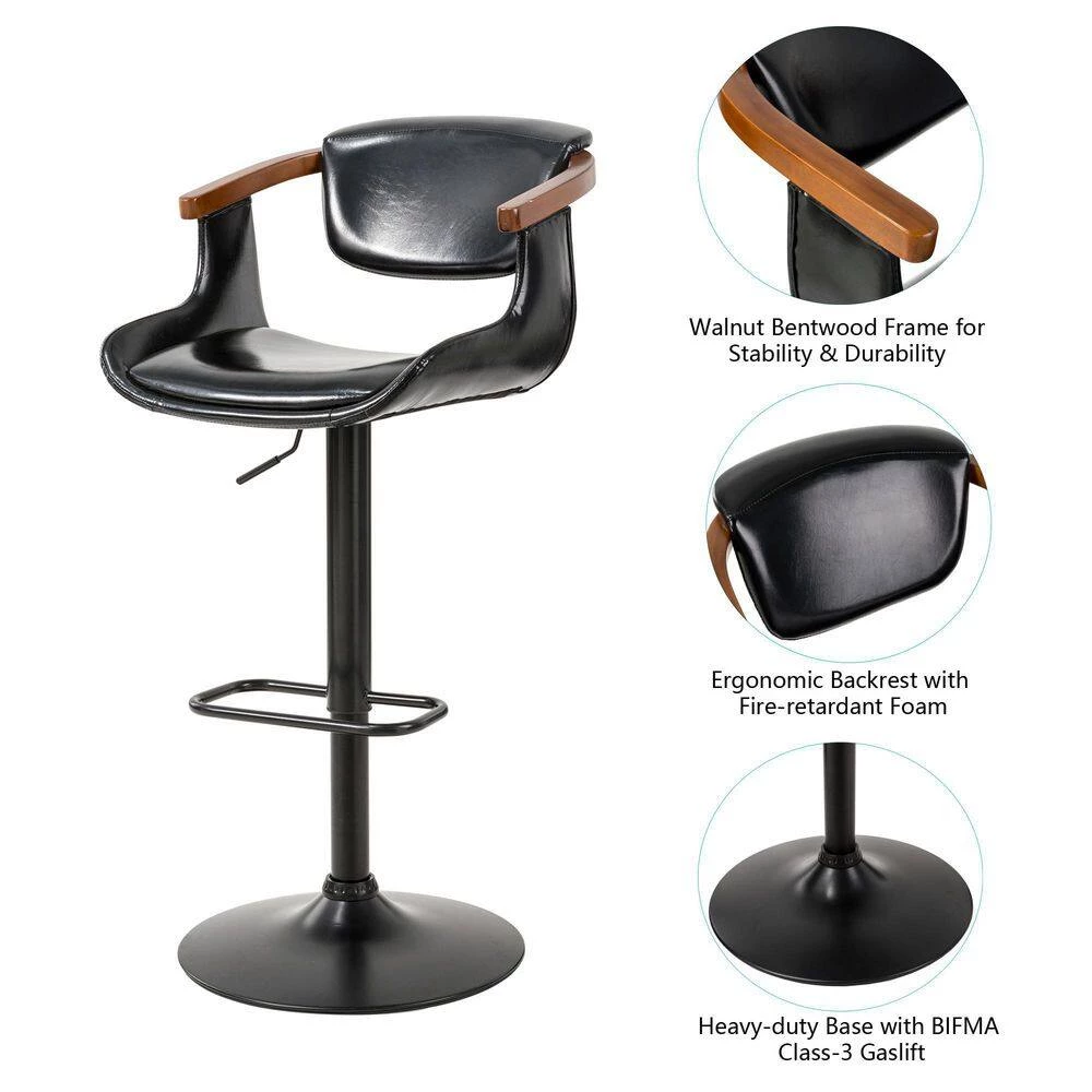 Featuring high-quality oli wax leatherette upholstery, walnut bentwood frame and matte black metal base, give a contemporary and modern touch to you home, also an ideal seat or home decor accent in cafes, bars, restaurant, kitchen island, living rooms and any entertainment space. Shell padded seat and ergonomic mid-back with high-density and resilience fire-retardant foam (CA TB117-2013 Certificate), a height adjustable swivel seat that can adjusts from counter to bar height, all assure the optimum comfort and let you relax at any time. This chair has 260 lbs. weight capacity for long-lasting use, features sturdy plywood frame, heavy-duty base, and upholstered seat and back for stability and durability.