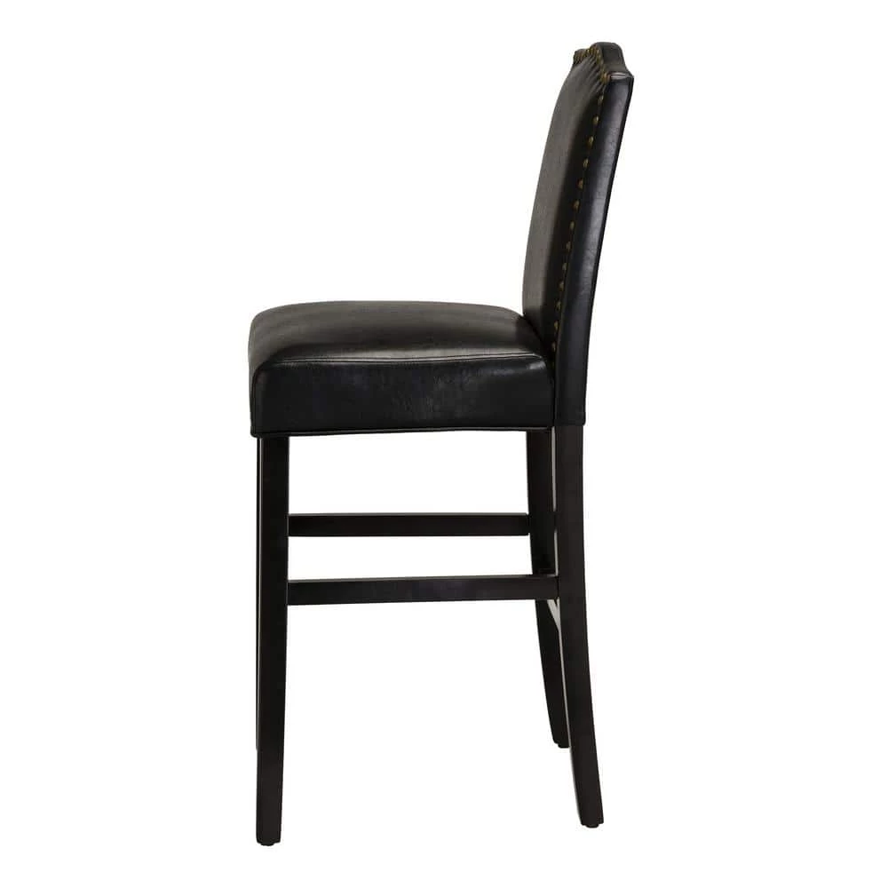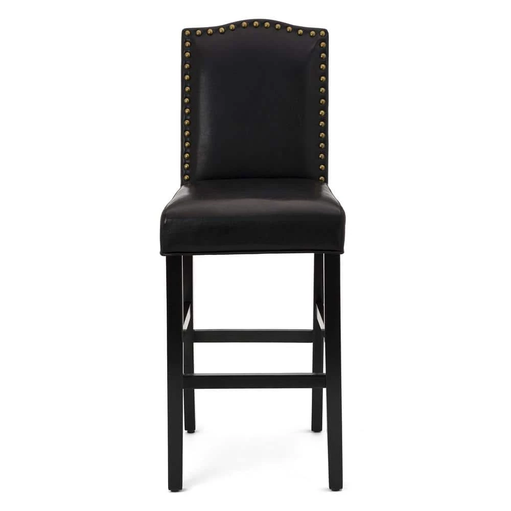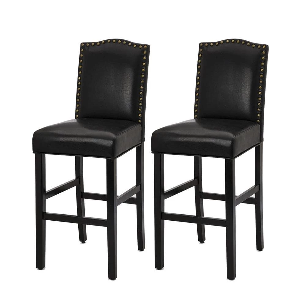 Add elegant and modern touch to your dining room decor while providing soft and comfortable seating for your guests with this Leatherette Studded back bar chair set. Featuring solid rubberwood, shiny leatherette and studded decorations on chair back. This set suits your home or barroom well. The design of front and side footrest can take the weight off your feet and relax easily.