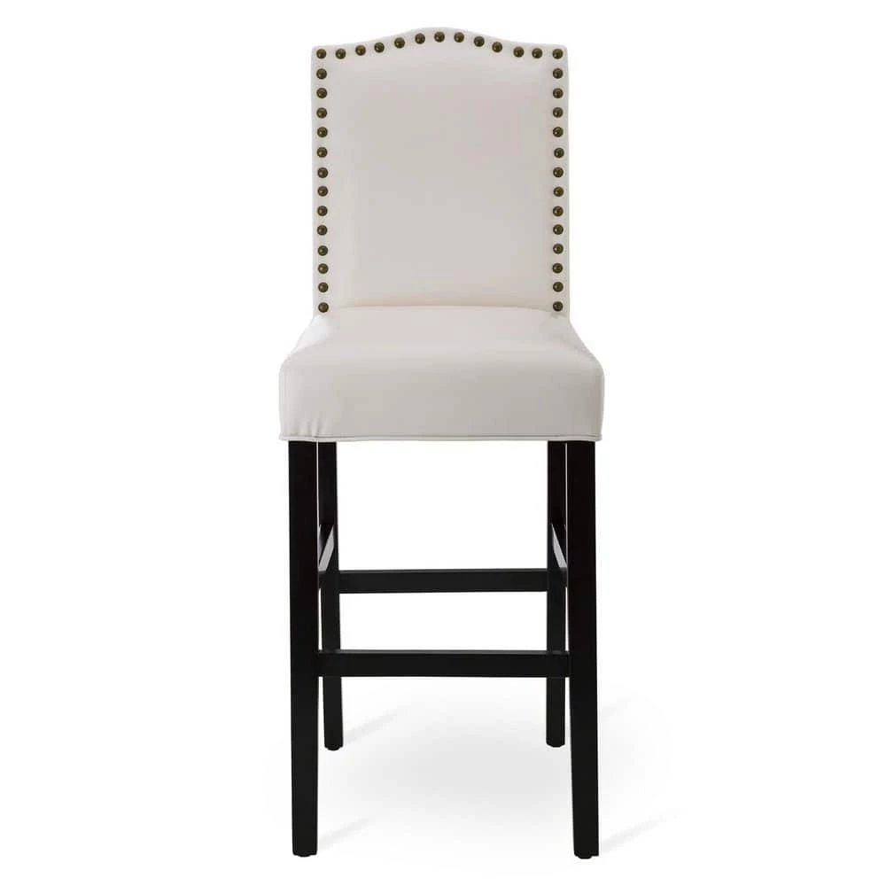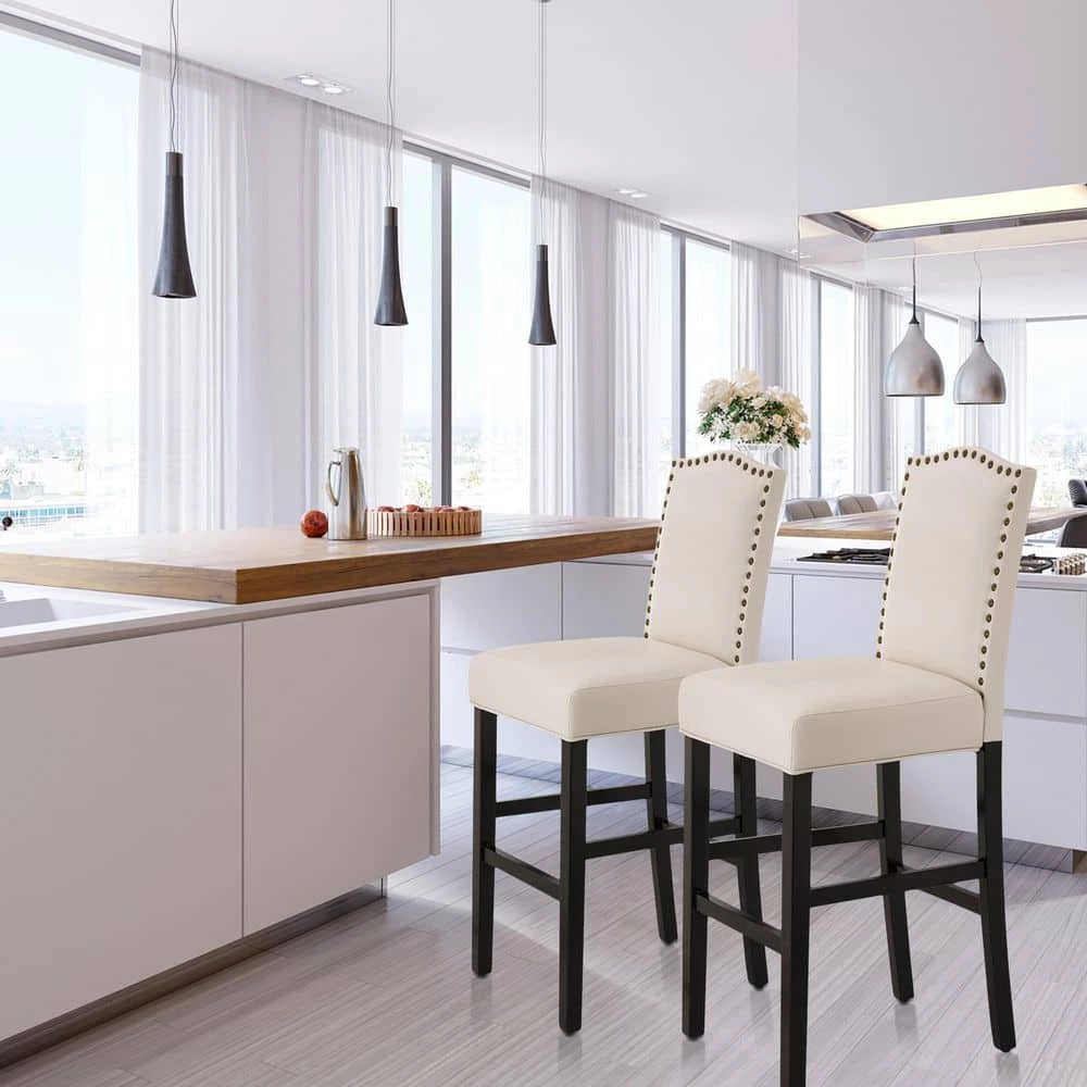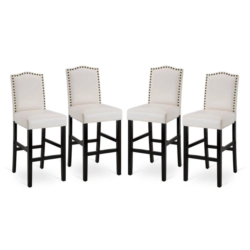 Add elegant and modern touch to your dining room decor while providing soft and comfortable seating for your guests with this Leatherette Studded back bar chair set. Featuring solid rubberwood, shiny leatherette and studded decorations on chair back. This set suits your home or barroom well. The design of front and side footrest can take the weight off your feet and relax easily.