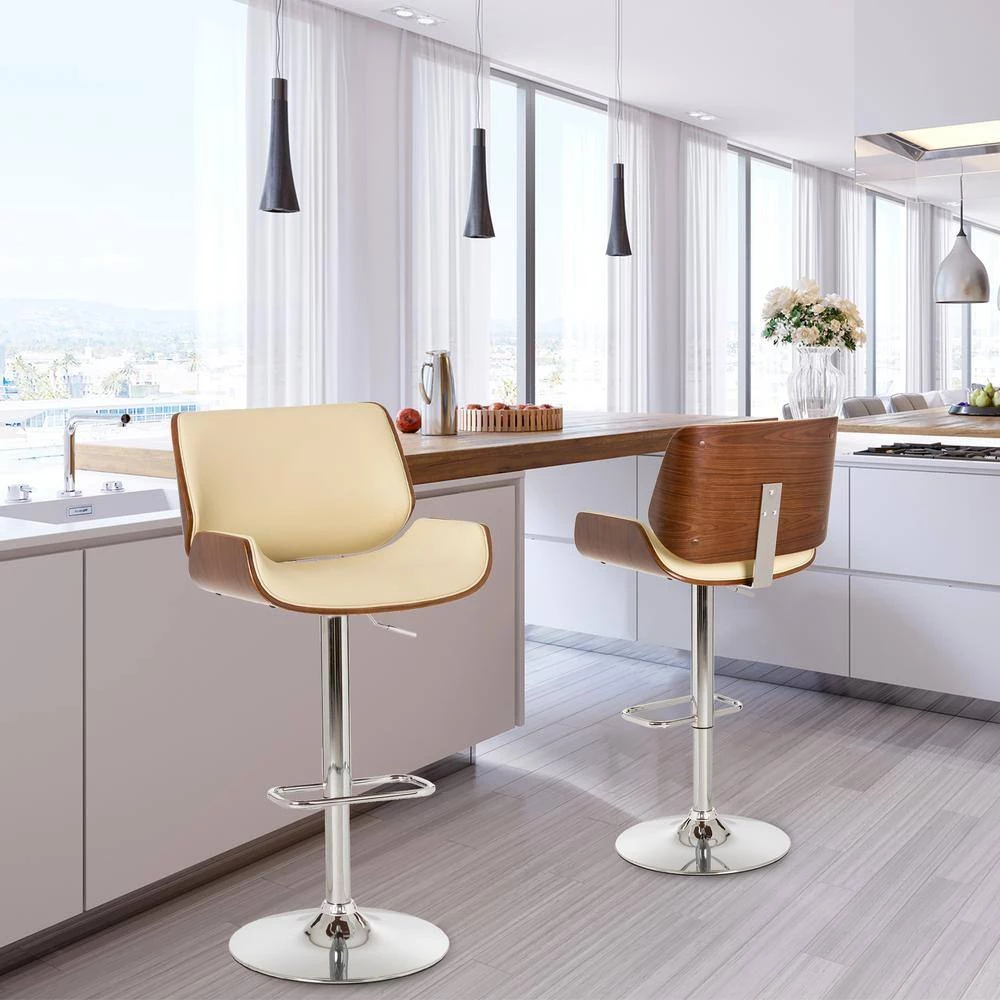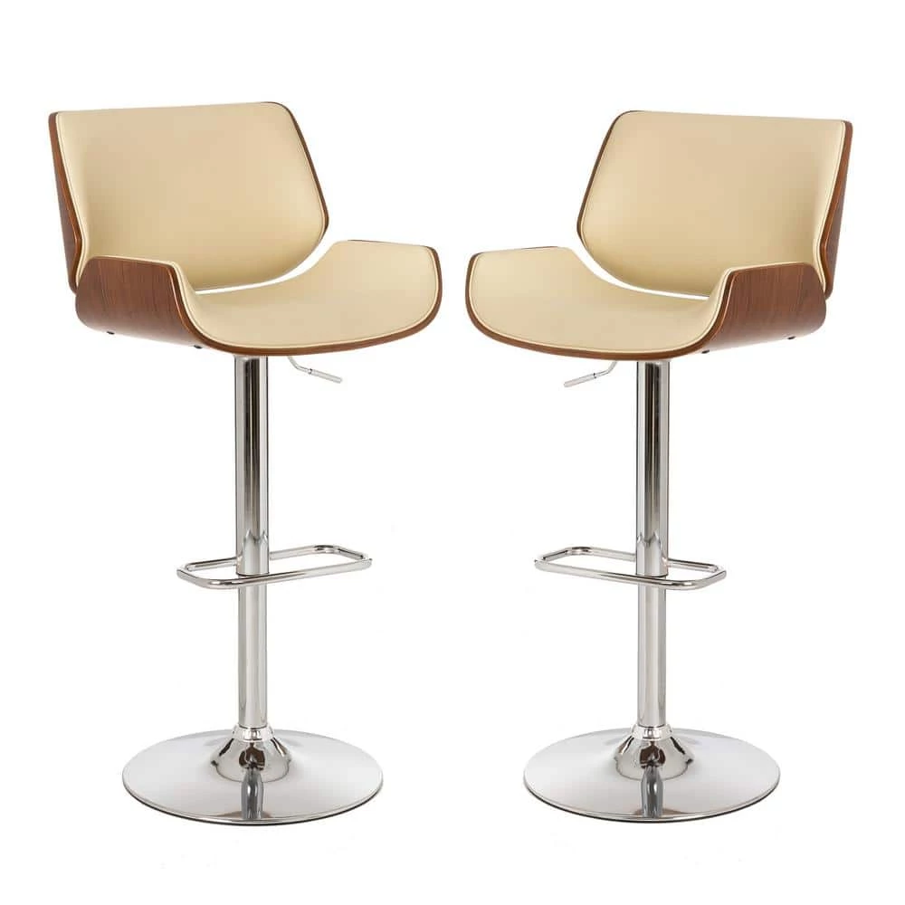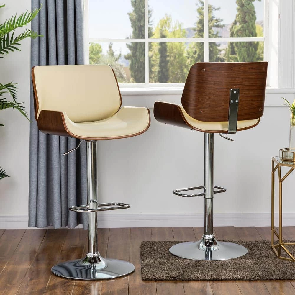 45.7″H Mid-century Modern Beige Adjustable Height Swivel Bar Stool,Set of Two by Glitzhome
