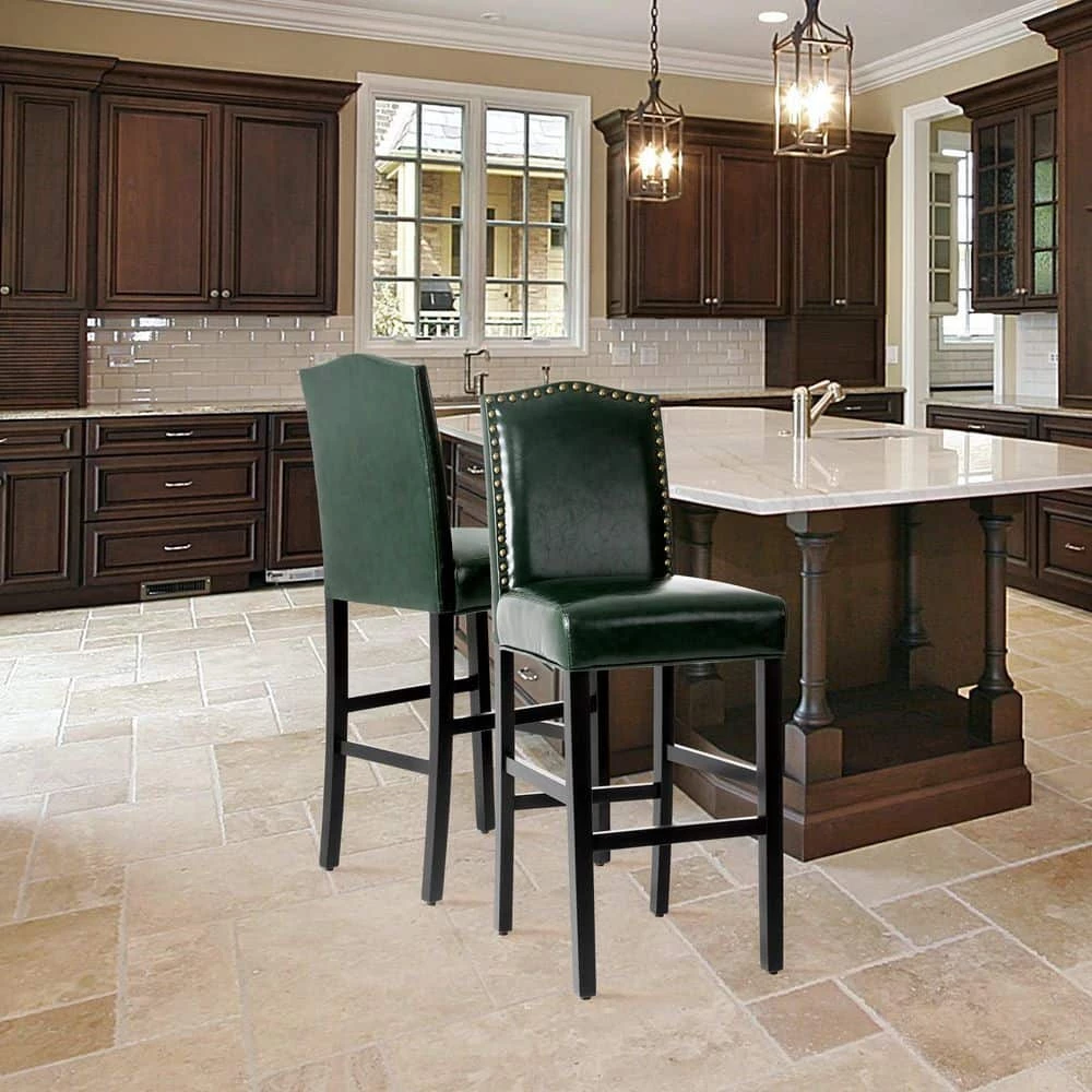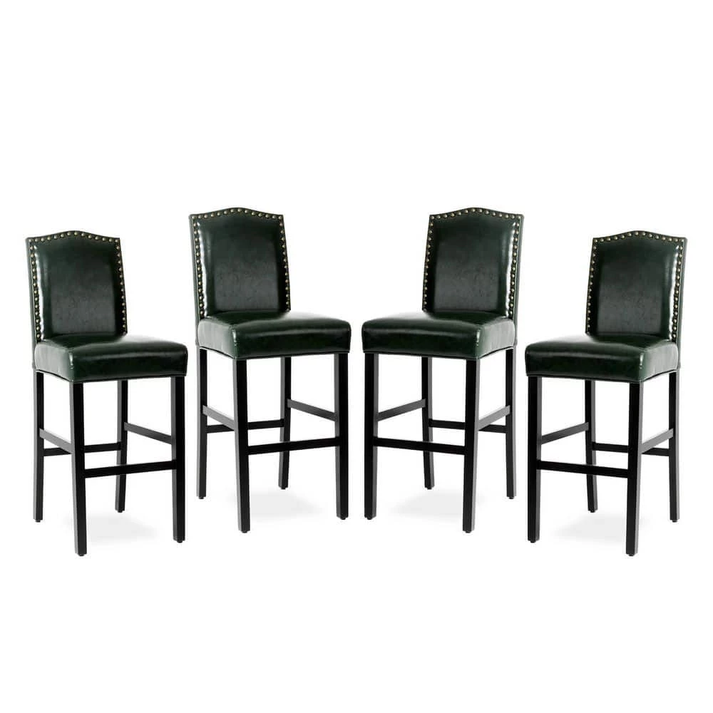 This 4 piece set is fitting perfectly in modern and contemporary furnishing. Whether you have a kitchen island or a breakfast bar, it is the perfect seating solution. Richly upholstered in vintage PU for easy maintenance, solidly constructed of hardwood for robustness and durability, thickly padded with resilience sponge for a better sitting experience, and distinctively accented with bronze nailhead trim for attractive exterior. It’s an ideal seat or home decor accent in cafes, bars, restaurant, kitchen island, living rooms and any entertainment space.