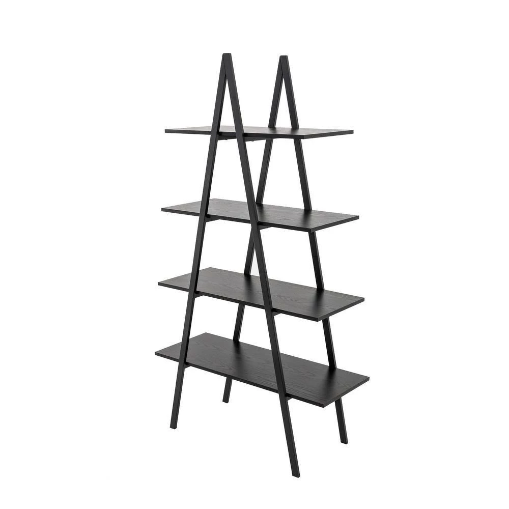 Organize your space with dynamic items like 4-Tiered Industrial Shelf. This minimalist shelf piece features a 4-tiered construction with melamine bases in a black wood grain appearance. Each tier of the shelf is connected and held by black metal trims that makes up the frame as well, and each level of the shelf is secured by connective bolts. Both functional and versatile, it can be used as planter stand, bookcase, shelf and organizer as a perfect addition to living rooms, bedrooms, kitchens, or any rooms that needs extra storage space. Also a perfect choice for you to decorate your home or display some artistic items.