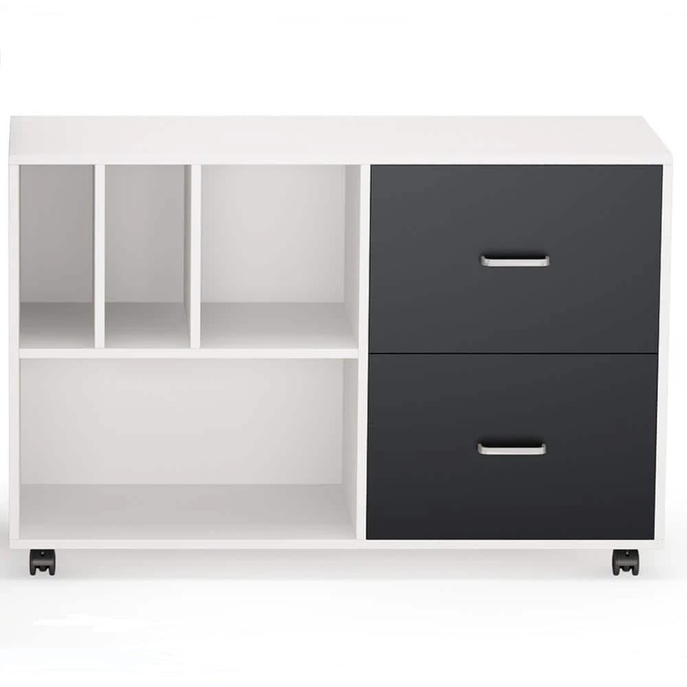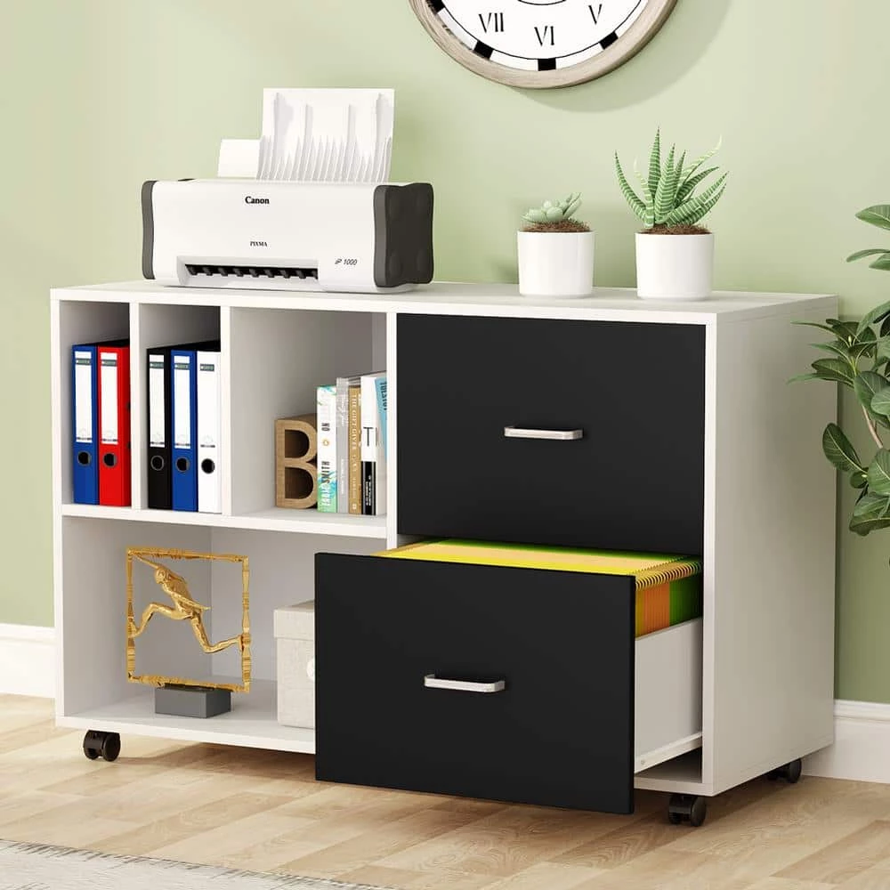 This filing cabinet with open storage spaces, file drawers and storage cabinet is designed to keep the office machines, paper, files and suppliers organized. It can be fixed beside or under desk. The sleek and modern finish is an easy fit for office or home study.