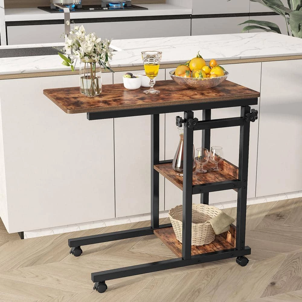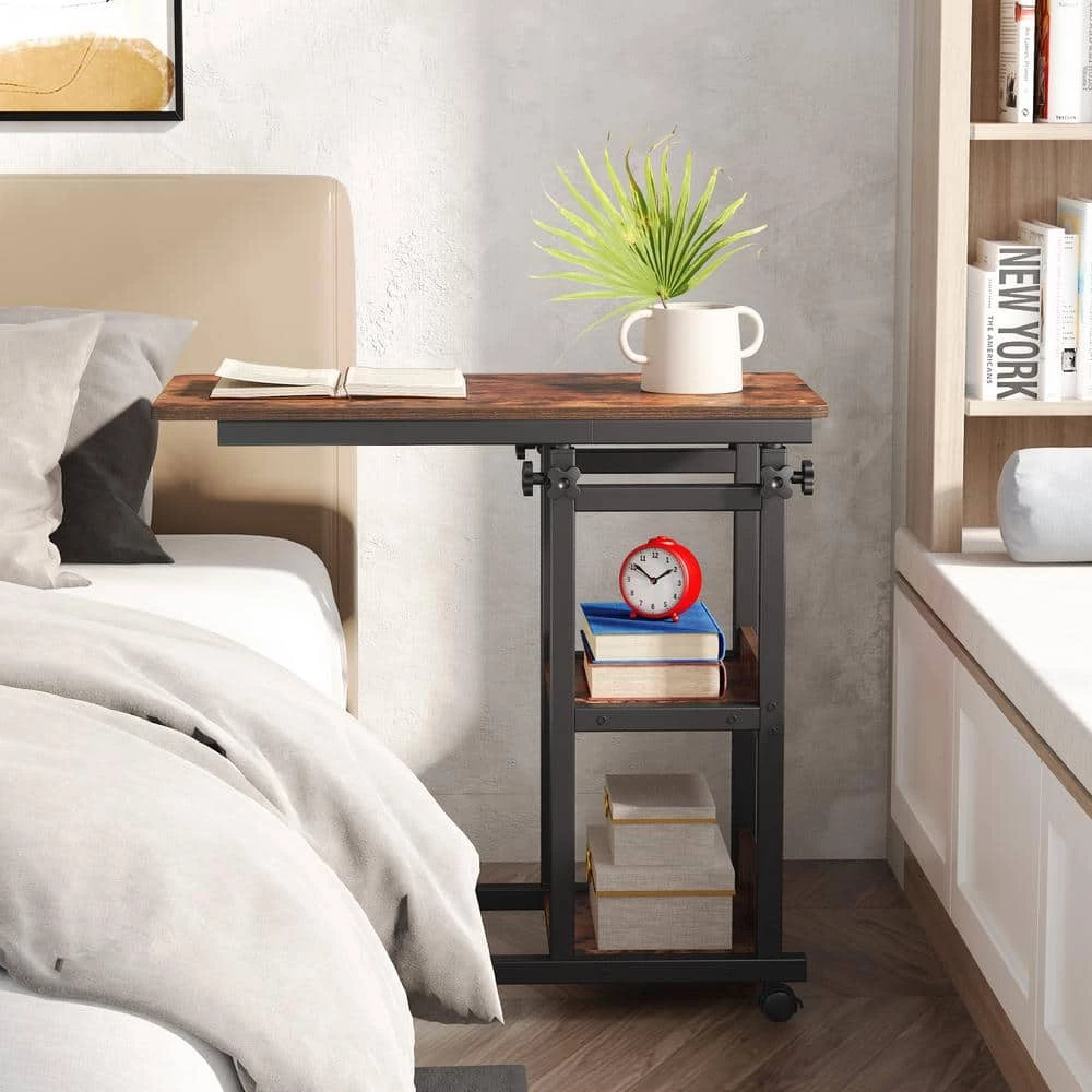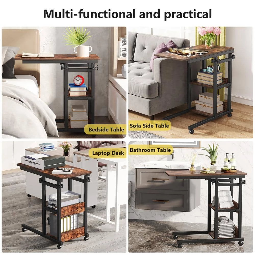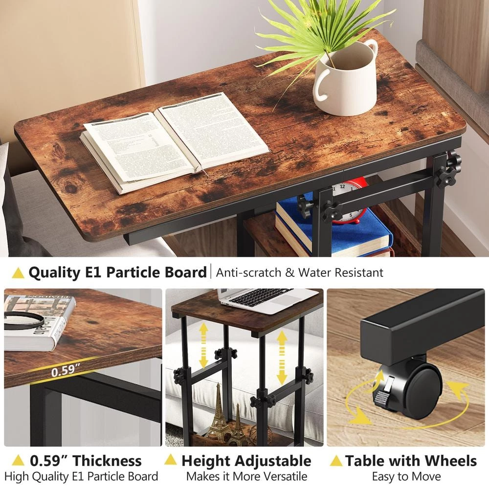 Designed as a multipurpose TV tray, this Hight Adjustable Mobile Portable Desk can be reduce back and neck pain after siting for a long time. Enjoy food and drinks while on the sofa watching TV or read and work in bed with this TV tray table. Great solution for setting out snacks for guests. It is perfect for Small Space, can be adjusted from 28. 3 in. to 35. 4 in. height range to meet different demands. Works well as beside desk, overbed table, bed side table, laptop table, notebook tablet portable workstation, sofa side table, over couch table, chairside table, dinner tray, TV tray for eating, mobile end table for coffee next to couch etc.
