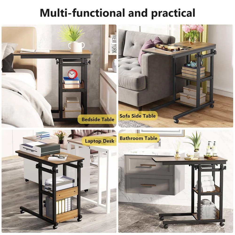 Designed as a multipurpose TV tray, this Hight Adjustable Mobile Portable Desk can be reduce back & neck pain after siting for a long time. Enjoy food and drinks while on the sofa watching TV or read and work in bed with this TV tray table. Great solution for setting out snacks for guests. It is perfect for Small Space, can be adjusted from 28. 3 in. to 35. 4 in. height range to meet different demands. Works well as beside desk, overbed table, bed side table, laptop table, notebook tablet portable workstation, sofa side table, over couch table, chairside table, dinner tray, TV tray for eating, mobile end table for coffee next to couch etc.