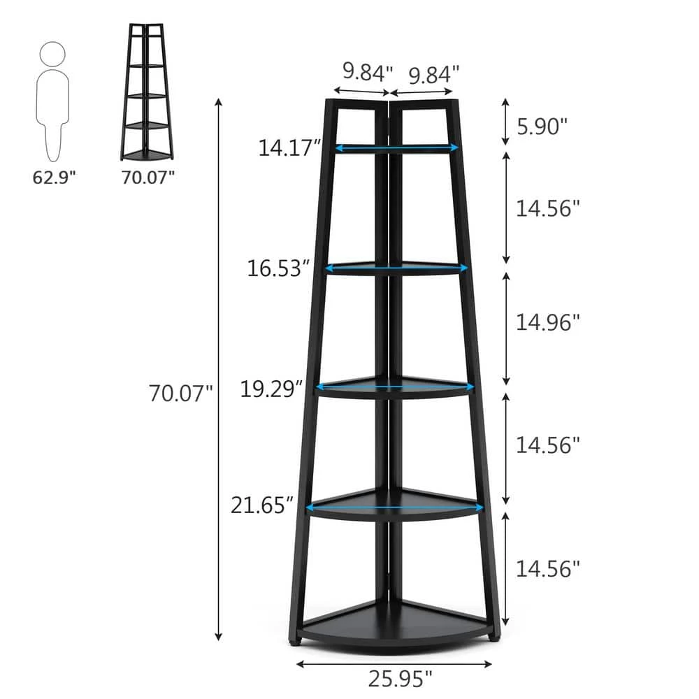 This tall shelving unit fits great in any corner of living room, bedroom, home office, kitchen, hallway, balcony, bathroom etc. works well as corer stand shelves, small bookshelf, display shelf, plant stand, flower rack for limited space.