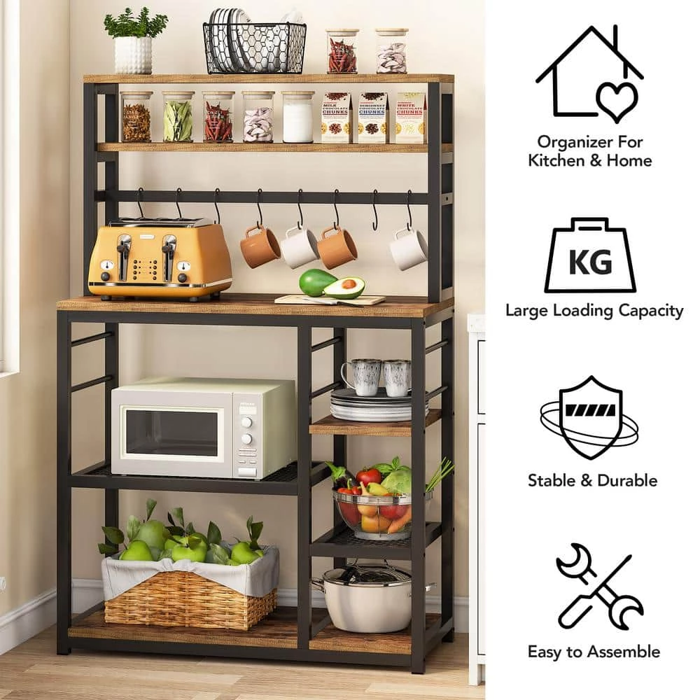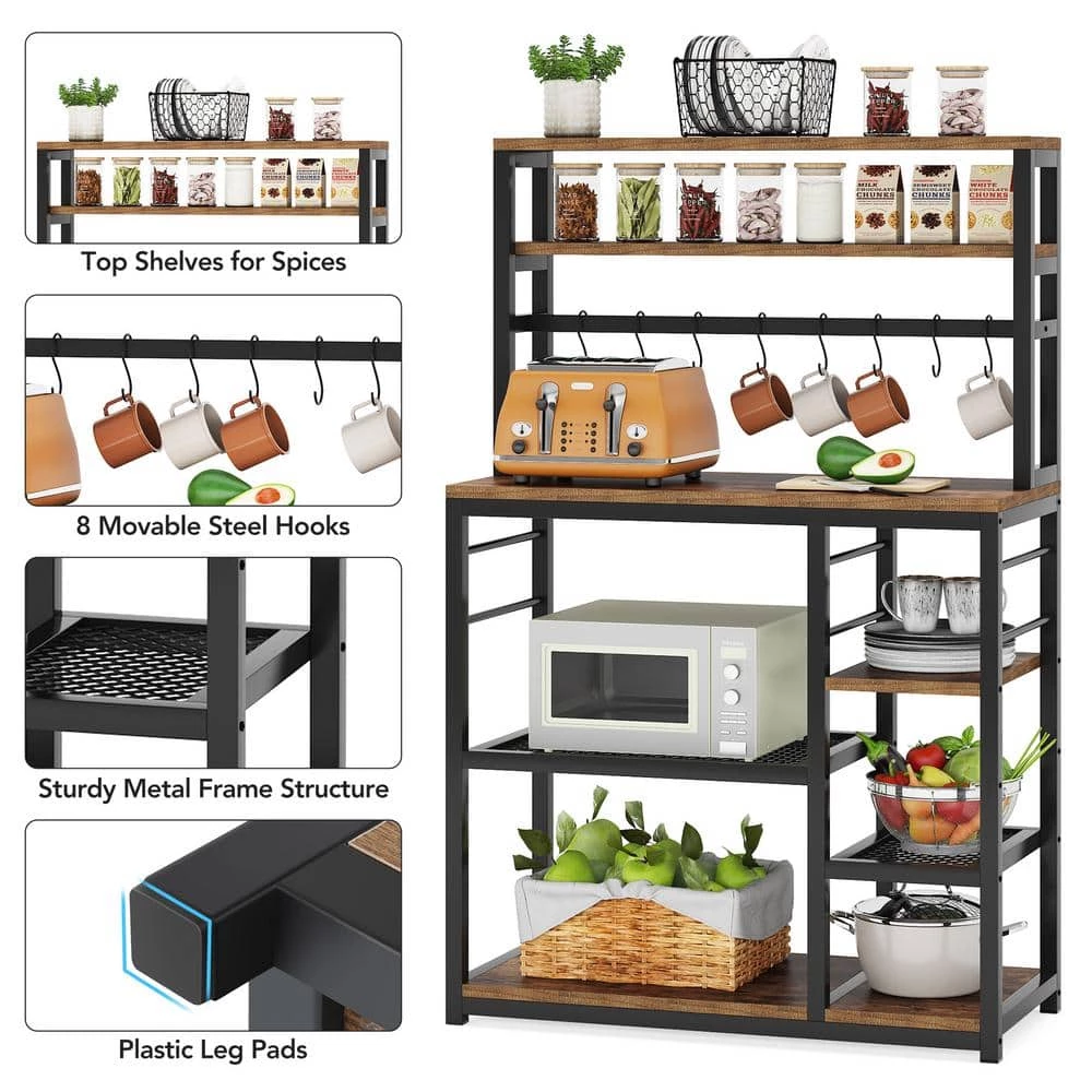 - In addition to being a useful kitchen utility shelf, this freestanding bakers rack can also be used as a microwave shelf, coffee bar shelf, and spice shelf organizer.