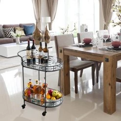 30.75 in. H Black Deluxe 2-Tier Metal Oval Mirrored Bar Cart by Glitzhome