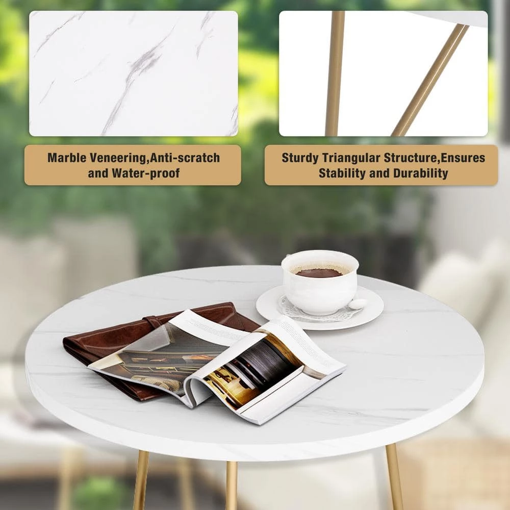 - Round tabletop offers a perfect platform for framed photos, a bouquet of blooming flowers or a slender table lamp, while three legs with golden finish provide stylish support and ensure stability