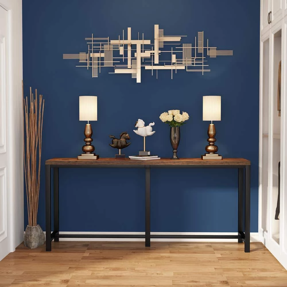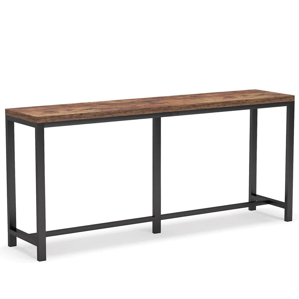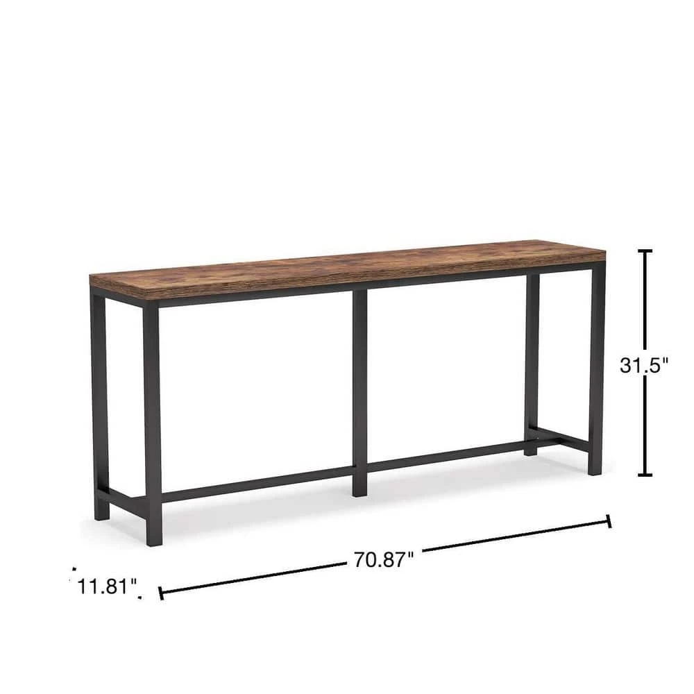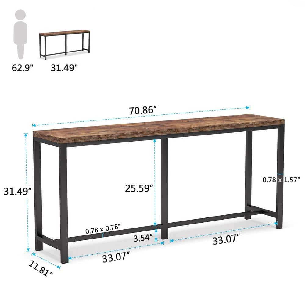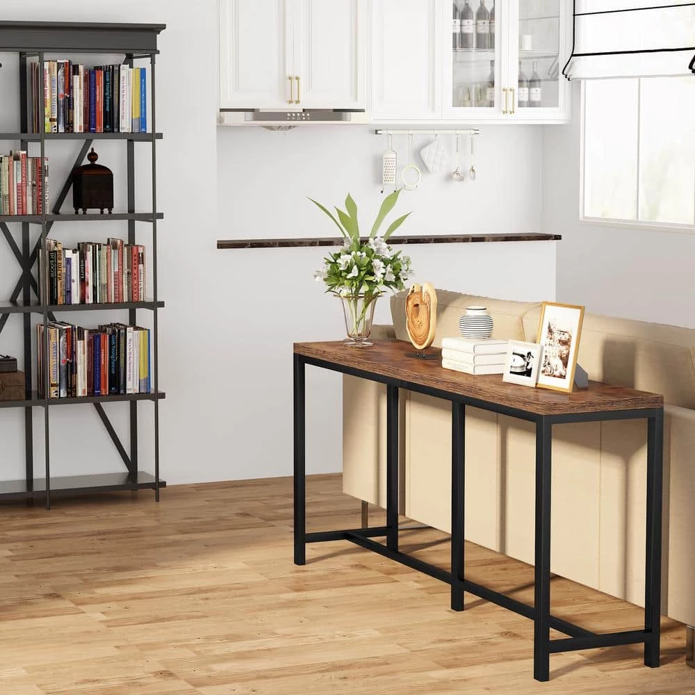 - You can use this long and narrow table as a sofa table behind your couch, also it’s a perfect entryway console table in a corner or a TV table in your living room, wide won’t let you feel too big or too wide, read the instruction first to distinguish which shelves and steel pipes are put on the bottom, middle, or the top, then use your electric drills and follow the steps, it takes only about half an hour to assemble it