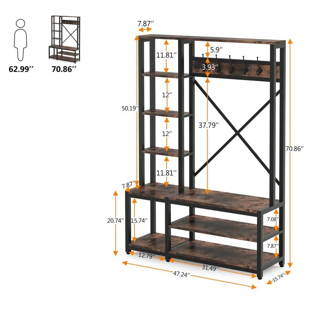 - 4 in 1 design: coat rack, entryway bench, shoes rack and storage shelf for help you well organize clothes and necessaries, measurement: 70.9 in. H x 47.2 in. W x 15.7 in. D