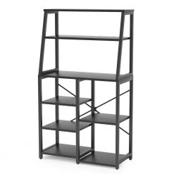 - Comes with 3 large shelves above and 5 staggered shelves on bottom Upper shelves keep microwave oven, toaster, or coffee machine at hand and bottom shelves are ideal for spice jars, dishes, or pans