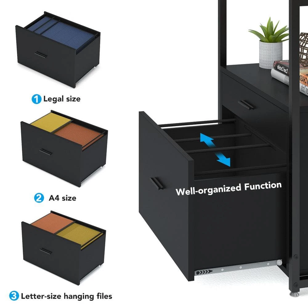 Designed to meet diversifying storage demands. Tribesigns storage bookcase with 2-drawers provides a private room to preserve your important documents and letters, favorite office supplies. Deep and spacious bottom drawer with side-to-side hang rails to accommodate A4, F4, letter sized and legal sized suspension files.