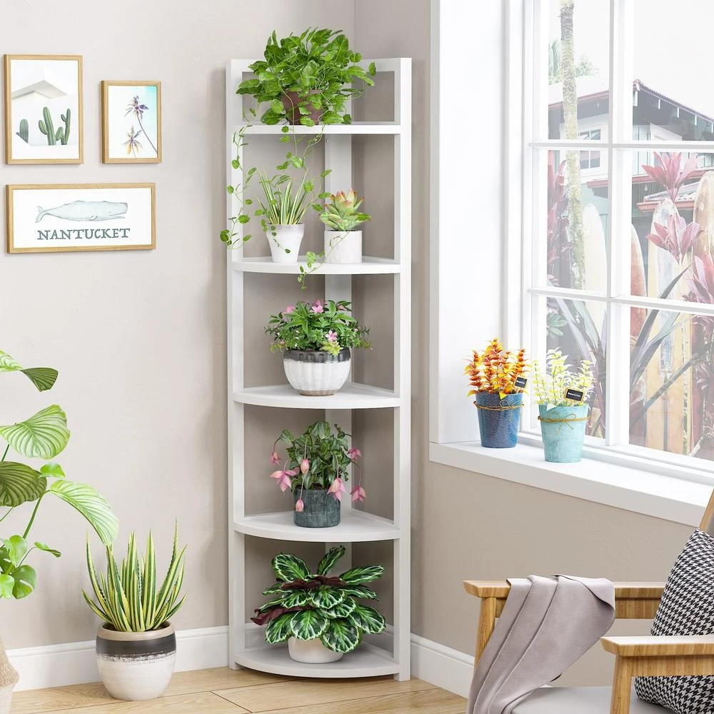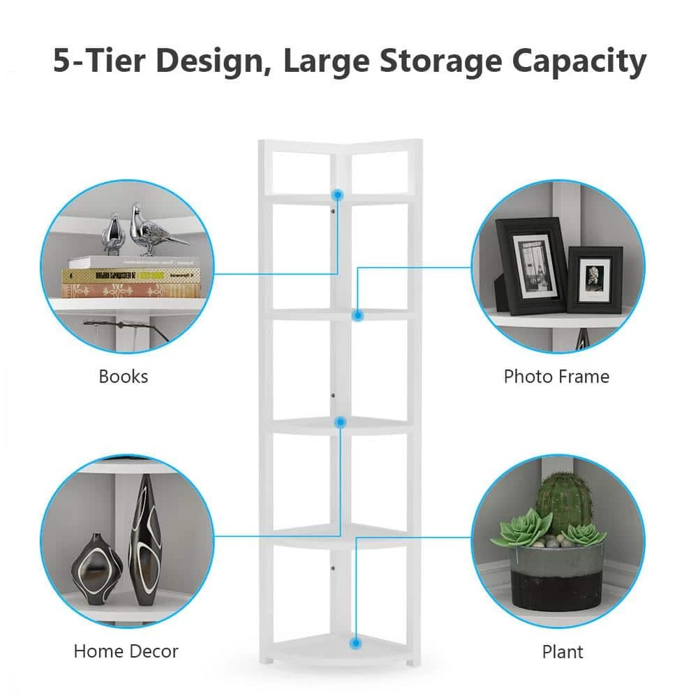 This tall corner shelf fits great in any corner or limited space to additional storage capacity without taking up space. A simple upgrade can make a huge difference in the look of your home. Good looking. This shelving unit fits great in any corner of the living room, home office, kitchen, hallway, bathroom, etc., works well as corer shelf, small bookshelf, display shelf, plant stand, flower rack.