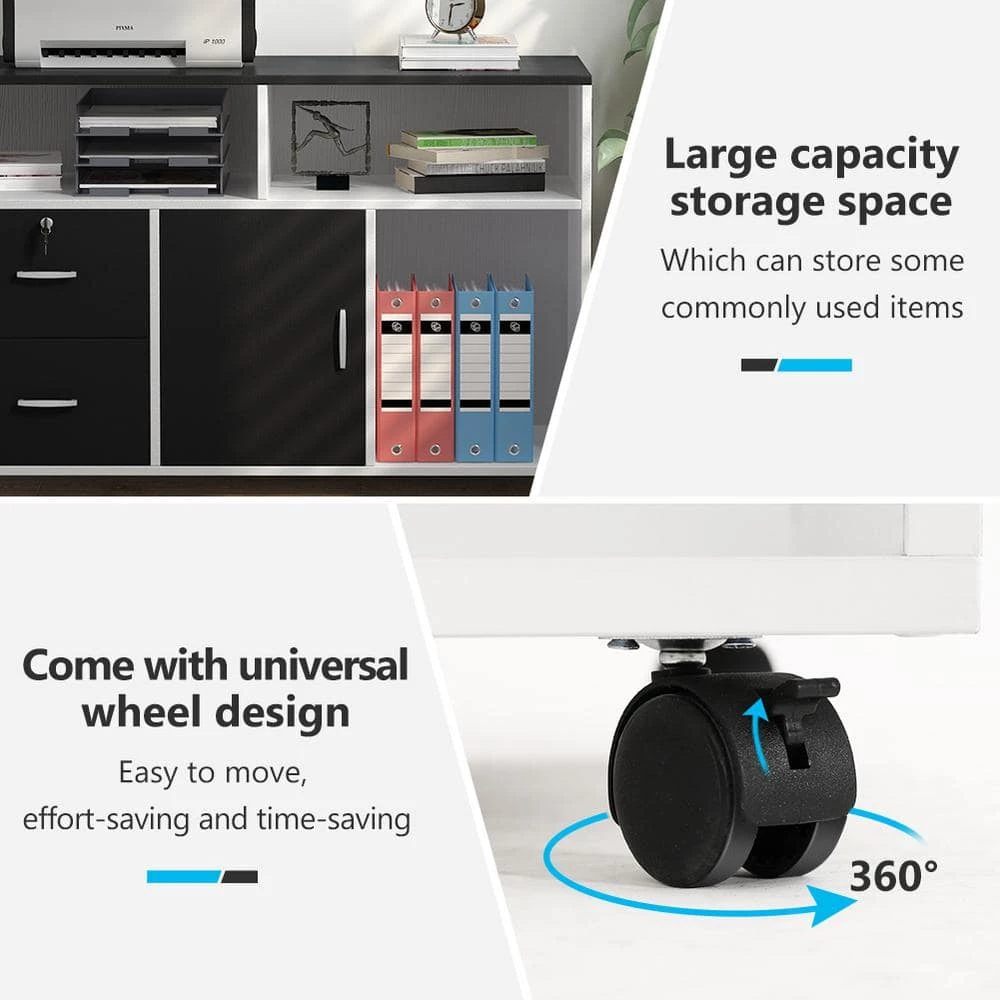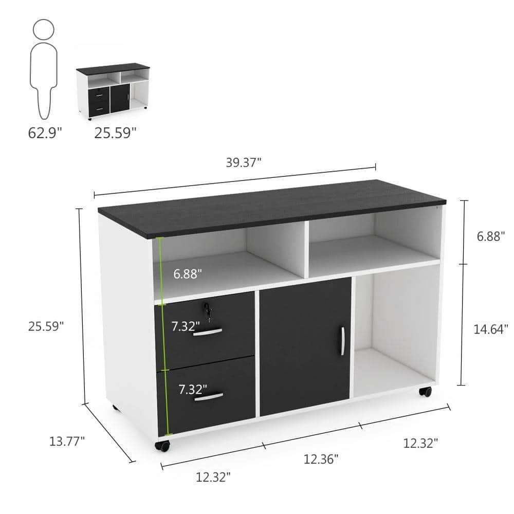 - Lateral file cabinet features 2 drawers, spacious desktop can hold your printer or scanner.