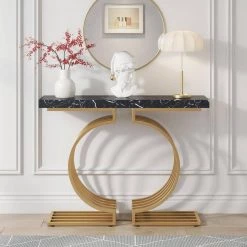43 in. Brown/Black Standard Rectangle Wood Console Table with Storage by Glitzhome