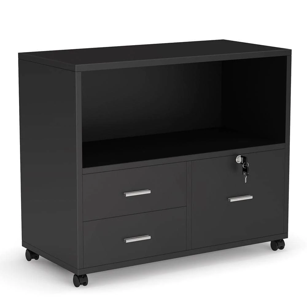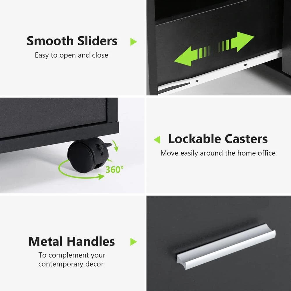 - Equipped with 4 wheels make this file cabinet easily moves to any position, built-in brakes on 2 casters to keep it in position and add stability. You can fix it beside or under the desk to bring convenience to your work.