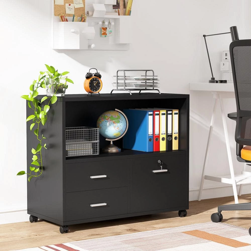 This file cabinet comes with a Locked File Drawer, 2 box drawers, and open storage to keep all your office files and supplies organized. The sleek and modern style perfect fit for office or home study.