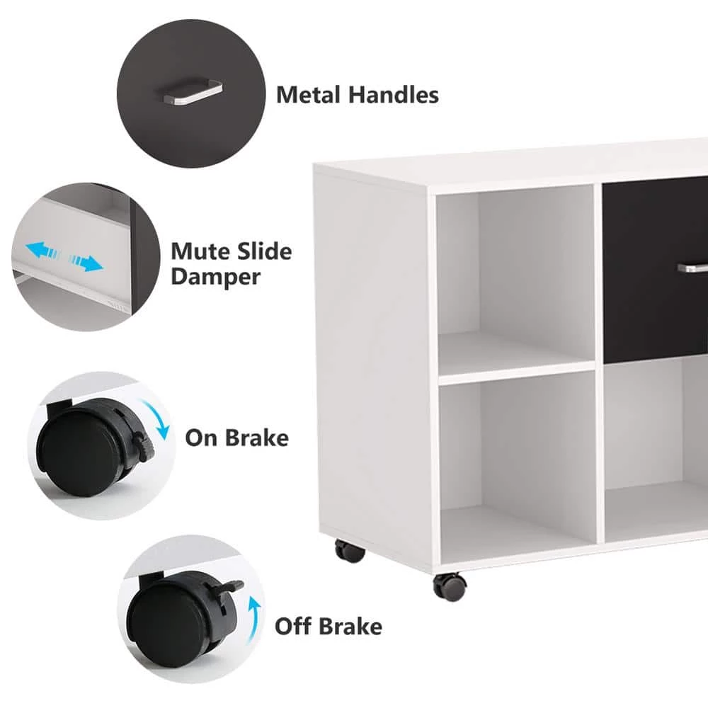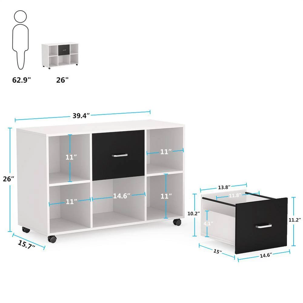 This filing cabinet is designed to keep the office machines, paper, files and supplies organized. It can be fixed beside or under desk. The sleek and modern finish is an easy fit for office or home study.