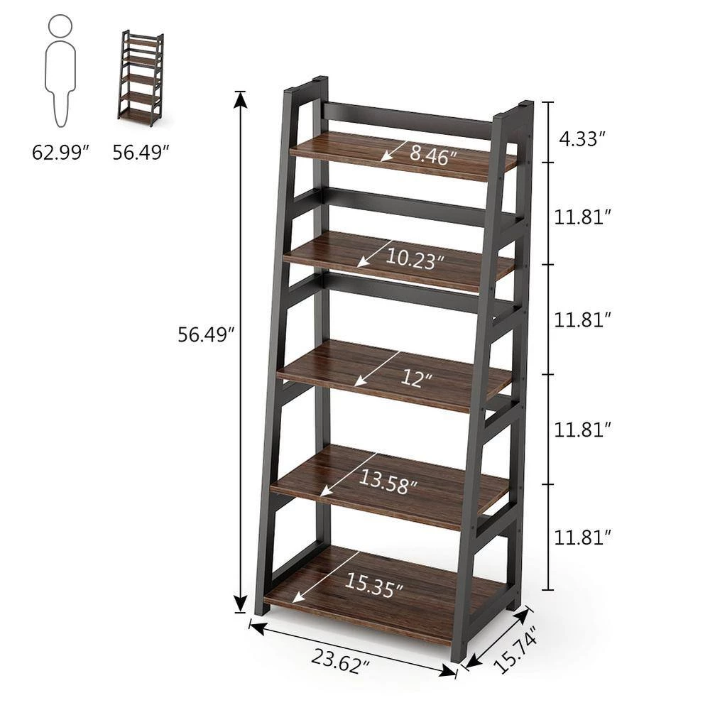 - Overall size: 23.6 in. L x 15.7 in. W x 56.5 in. H, the ladder storage shelf provides ample storage space for your books, knickknack, family photos, ornaments and more, bottom shelf is 11 in. high which allows you to put baskets on it