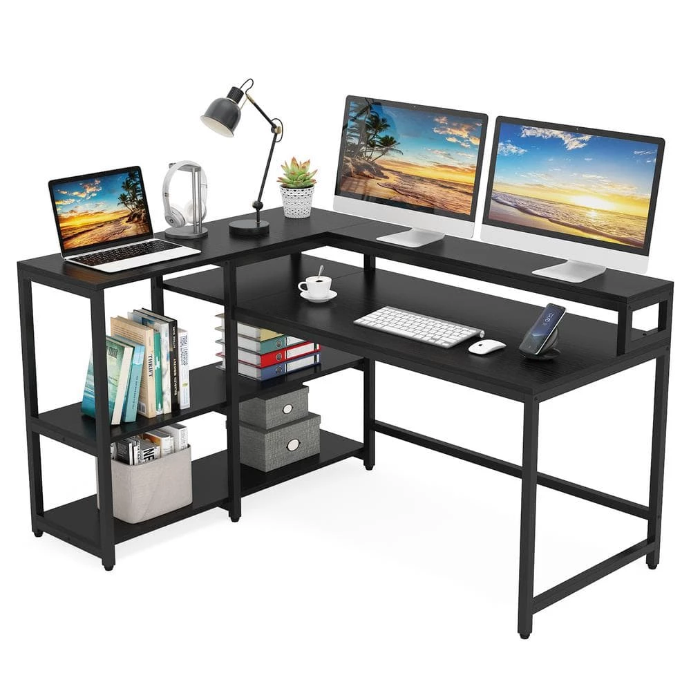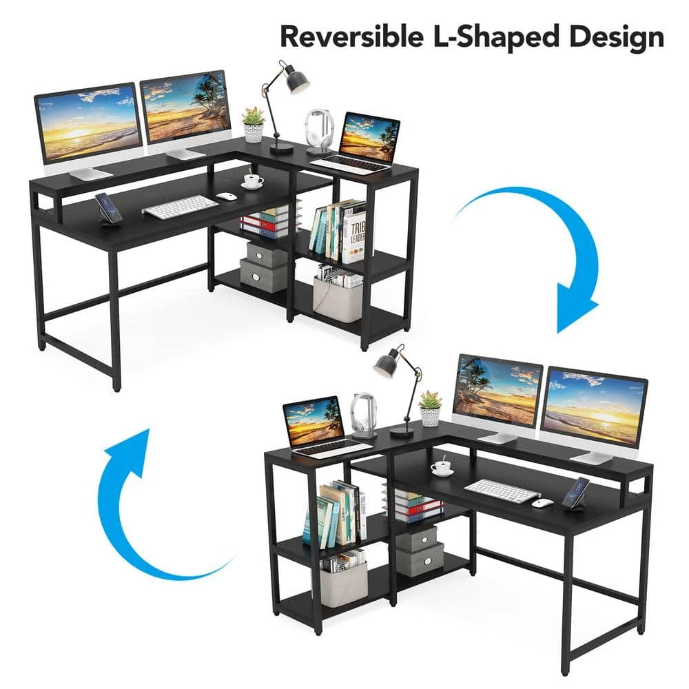 - Reversible design with reversible design, the L-shape desk is configured either on the right or left side as your personal preference, corner computer desk comes with 2-shelves to keep your files and books at hand, you can choose to assemble storage table on left or right side as per your needs, it can also hold printers, scanners, fax machines, which keep everything you need at work within arm’ s reach to free up work space