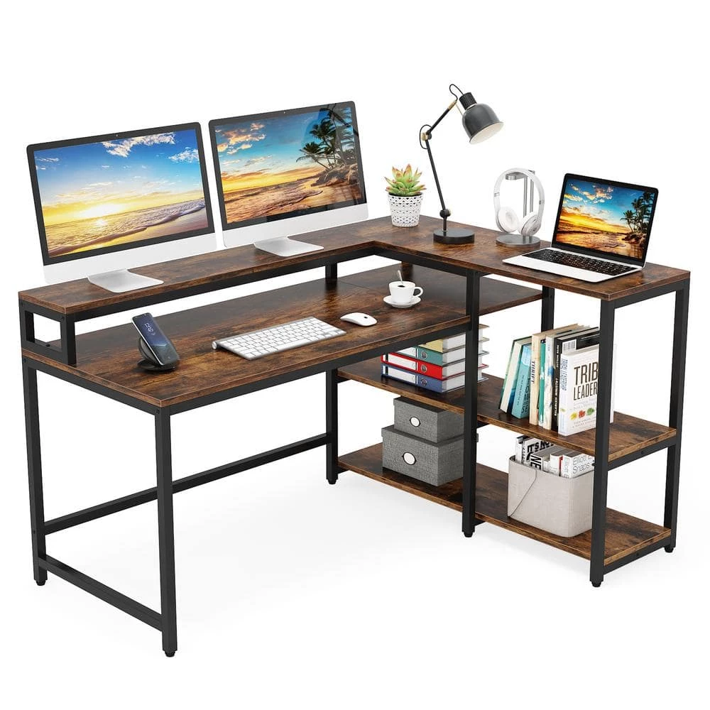 - Reversible design with reversible design, the L-shape desk is configured either on the right or left side as your personal preference, corner computer desk comes with 2-shelves to keep your files and books at hand, you can choose to assemble storage table on left or right side as per your needs, it can also hold printers, scanners, fax machines, which keep everything you need at work within arm’ s reach to free up work space