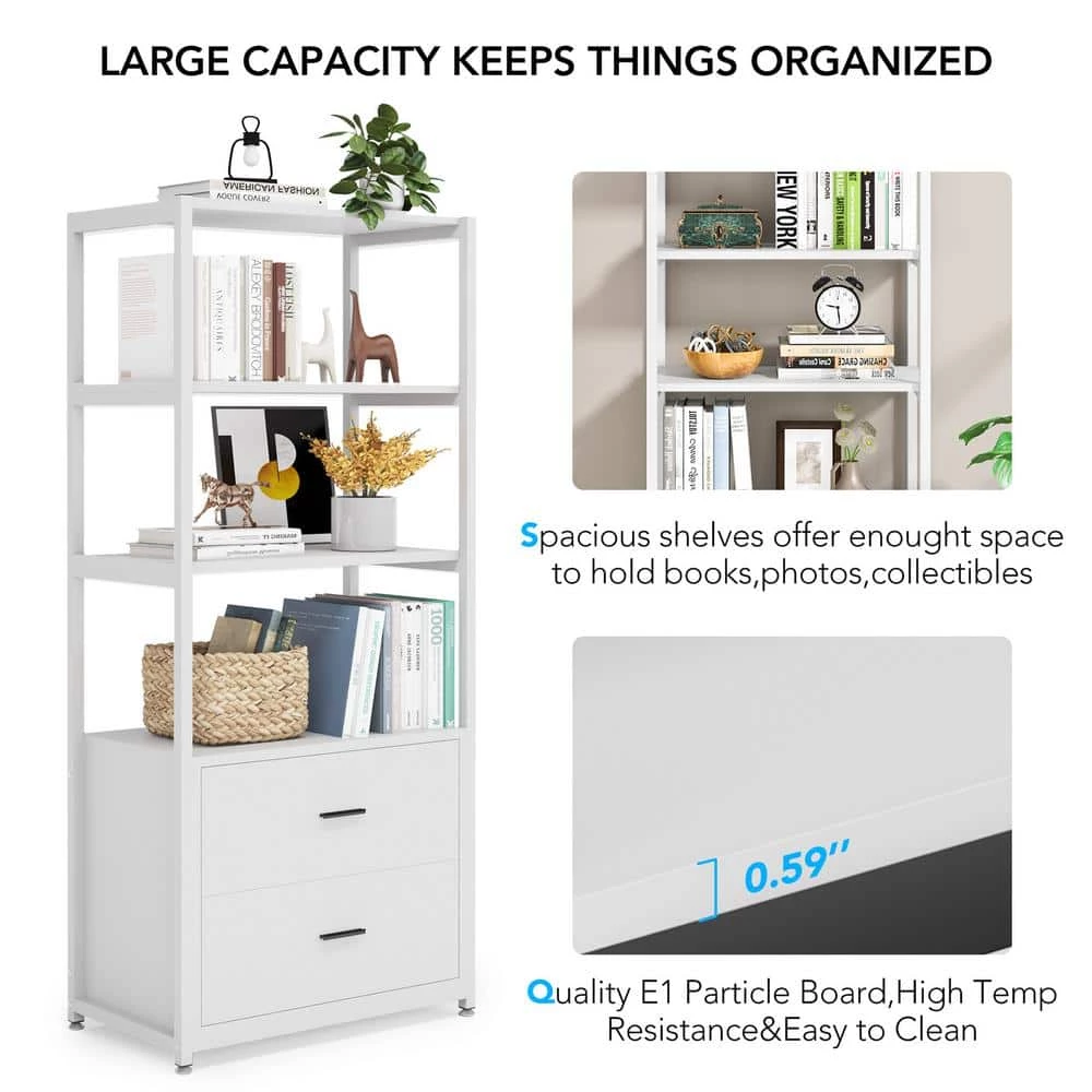 It’s not just a bookcase, this standing shelf with 2-big drawers can be used as a bookshelf, file cabinet, display shelf or storage shelf for your living room, study room, bedroom or office to store and display your stuff, keeping the space organized and fresh. The bookcase is made of quality E1 particle board and sturdy metal frame. The board is waterproof, scratch resistant, and easy to clean. 4-adjustable feet pads protect your floor from scratching. Because the steel frame are carefully painted, this bookshelf comes with perfect rustproof performance and good load capacity of 250 lbs. The upper 4-shelves provide you with sufficient storage space. And the lower 2-drawers also ensure your privacy. No matter what style of decor you put it in, this bookcase can blend well while showing its distinctive modern industrial design.
