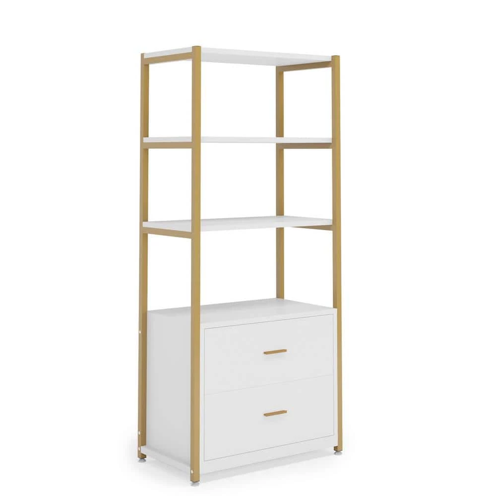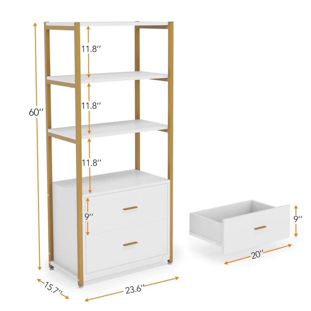 It’s not just a bookcase, this standing shelf with two big drawers can be used as a bookshelf, file cabinet, display shelf or storage shelf for your living room, study room, bedroom or office to store and display your stuff, keeping the space organized and fresh. The bookcase is made of quality E1 particle board and sturdy metal frame. The board is waterproof, scratch resistant, and easy to clean. 4-adjustable feet pads protect your floor from scratching. Because the steel frame are carefully painted, this bookshelf comes with perfect rustproof performance and good load capacity of 250 lbs. The upper 4-shelves provide you with sufficient storage space. And the lower 2-drawers also ensure your privacy. No matter what style of decor you put it in, this bookcase can blend well while showing its distinctive modern industrial design.
