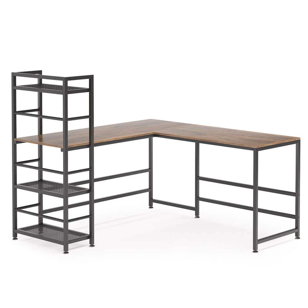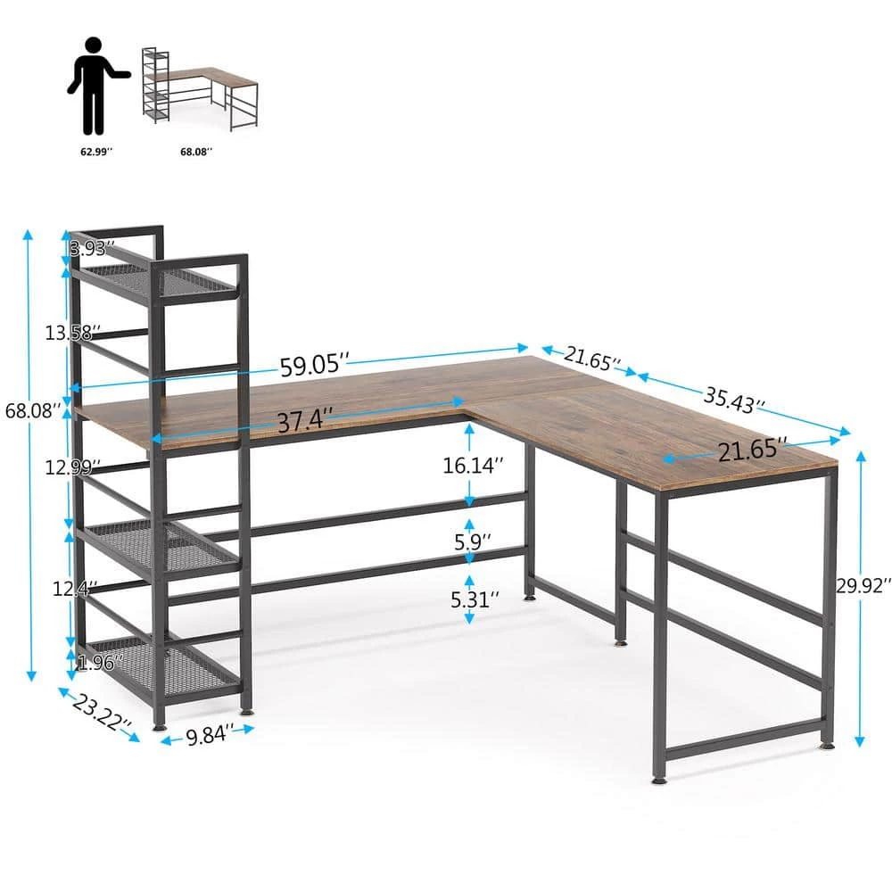 - Sturdy Construction: Made of thickened high quality particle board, this L-shaped computer desk is sturdy to use and easy to clean. 4-tier mesh wire storage shelves provide abundant space for you to sort out your all office supplies without any clutter.