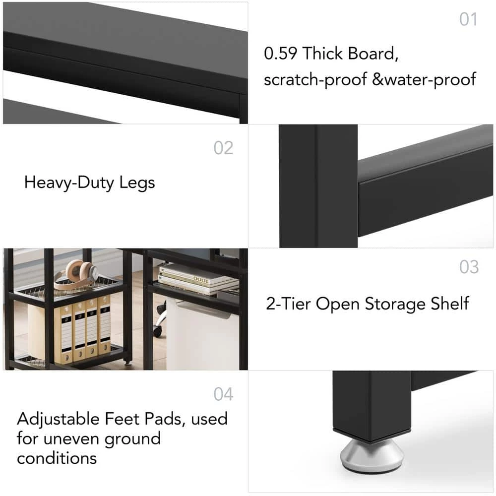 - Space saving : 2-tier open shelves under the desk provide additional storage space for office supplies without taking up space,