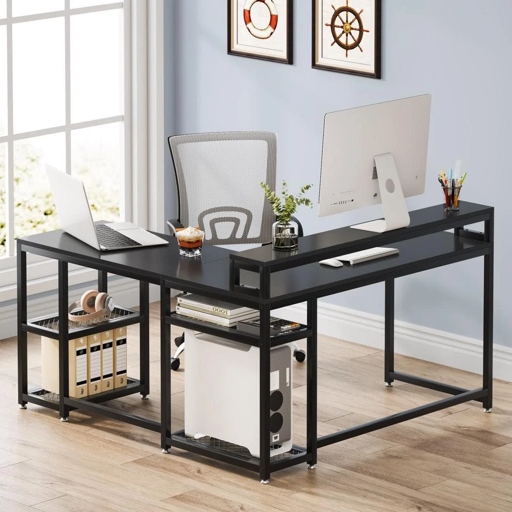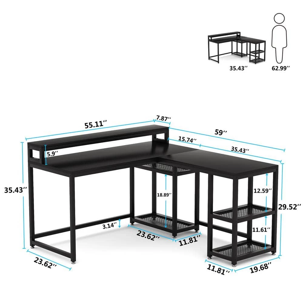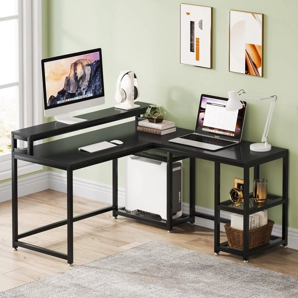 - Reversible L-shaped design: you can choose to install the large desktop with monitor riser on left or right side to cater to your needs