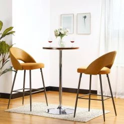 40.25 in. H Yellow Low Back Mixing Fabic/Leatherette Bar Stool with Brown Tapered Metal Legs (Set of 2) by Glitzhome