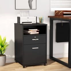 Cacey Black File Cabinet with 4 Storage Shelves and 2 Drawers by TRIBESIGNS WAY TO ORIGIN