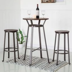 29.92 in. H Coffee Color Rustic Steel Bar Stool with Elm Wood Top (Set of 2) by Glitzhome
