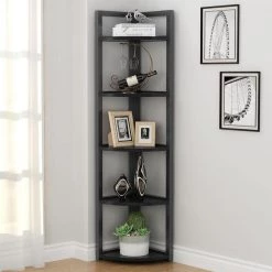 Andrea 70 in. Black Wood 5-Shelf Ladder Bookcase with Open Back by TRIBESIGNS WAY TO ORIGIN