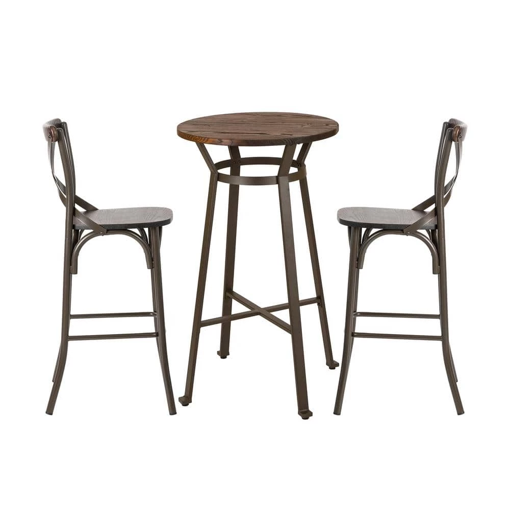 For a pop of personality at the kitchen island, dining room, restaurant or home bar, this bar table and bar stool set is your best choice. The bar stool features rustic steel tubular frame and retro finshed wood for an industrial look, its X-shaped back design, arched half-moon support and splayed legs give a classic look that works with a variety of decor. The bar table features metal legs that are a cool industrial touch and the rustic wood finish top is beautifully weathered. Bring an effortlessly trendy look into your kitchen or dining decor with this tall bar table. Designed in rich brown, it’s an easy match for most homes. With elm wood top, it is easy and convenient to be cleaned with damp cloth. Sturdy and durable.