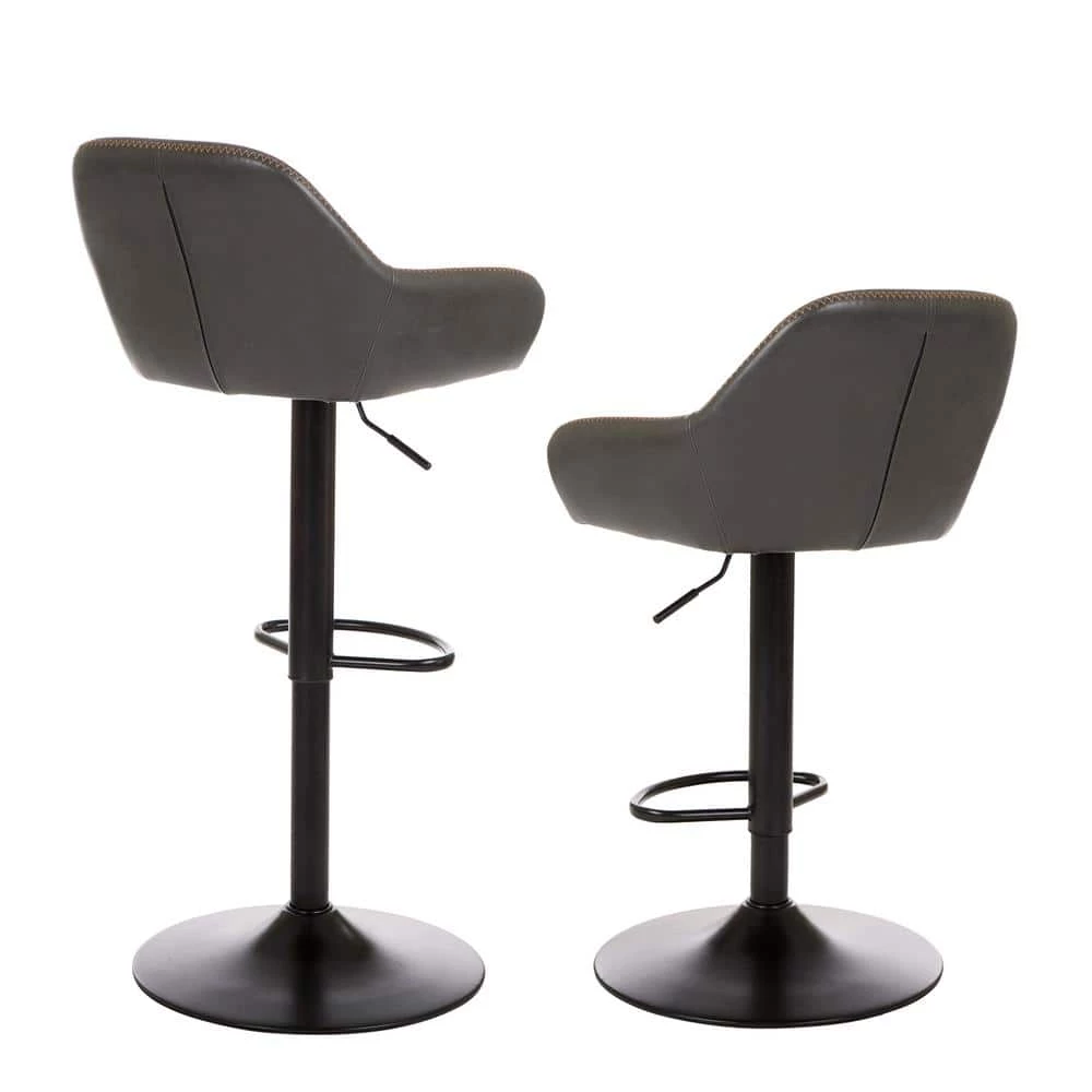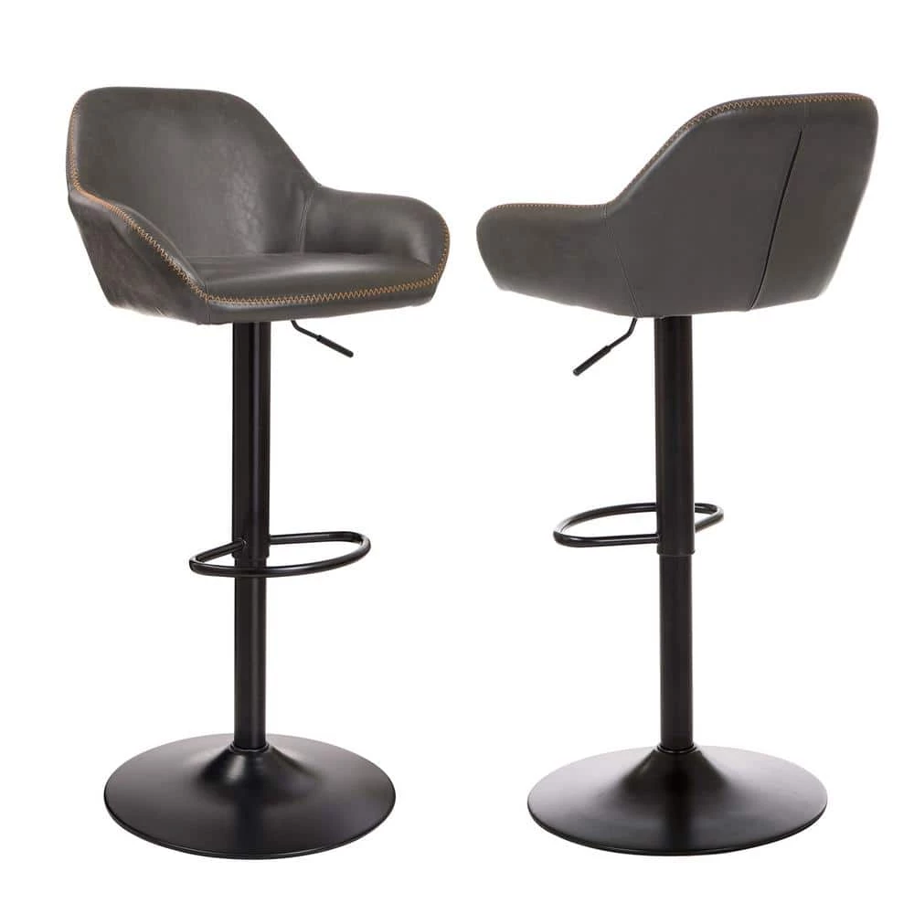 S/2 Mid-Century Modern Vintage Gray Leatherette Gaslift Adjustable Swivel Bar Stool by Glitzhome