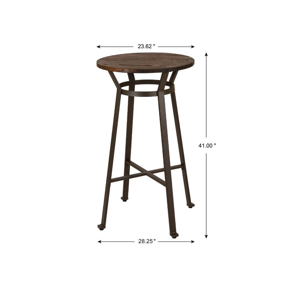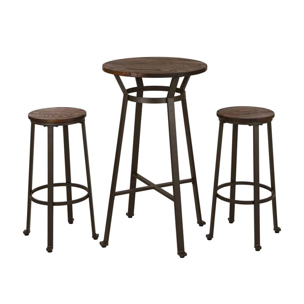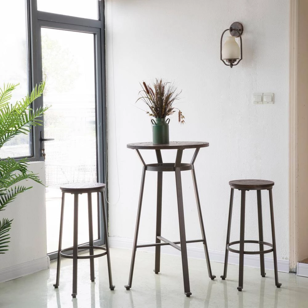 Add some modern industrial charm to you dining room or kitchen with this bar table and stool set . The classic design Rustic Steel Bar Stool easily complements any home’s decor. The four footrails provide stability and durability. Finished in a brown and coffee, this piece is an easy addition to any color scheme. Ideal for any home bar, counter or high top table.The metal legs of bar table are a cool industrial touch and the rustic wood finish top is beautifully weathered. Bring an effortlessly trendy look into your kitchen or dining decor with this tall bar table.
