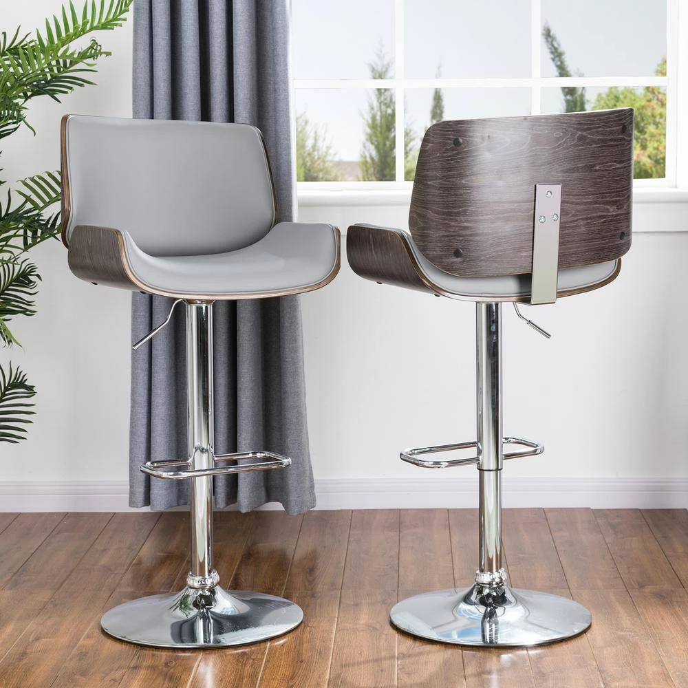 This stylish and contemporary-Pieces of furniture are sure to be a hit for your leisure and large gatherings. It will offer you a comfortable seating experience. Its simple but elegant design makes it perfect for home, restaurant, bar and office. Comprised of leather and steel, the stools are designed to be sturdy and durable for any occasion. Attached at the bottom of these stools are a footrest, made to keep those achy and tired feet elevated off the ground to ensure a restful experience. Swivel action gives the seated individual the freedom of movement and able to carry conversations in any direction. Ergonomic curved back in the breathable material. Padded seat and armrest for all-day comfort and support.