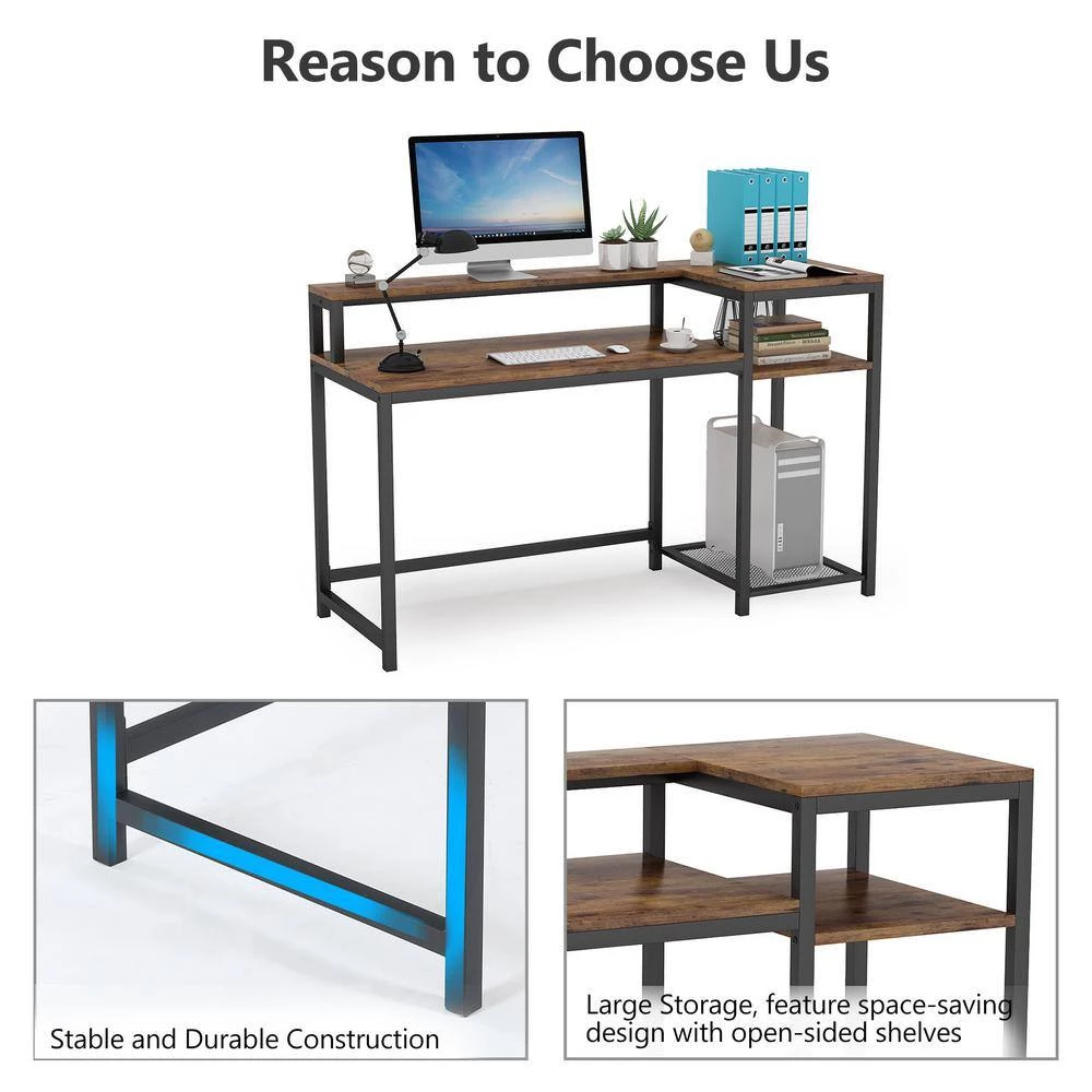 Large Storage & Spacious Desk: Designed with large desktop +Monitor Stand Shelf+2 with open-side shelves+CPU Stand, providing enough storage space to accommodate your laptop, pc, keyboard, desk accessories.